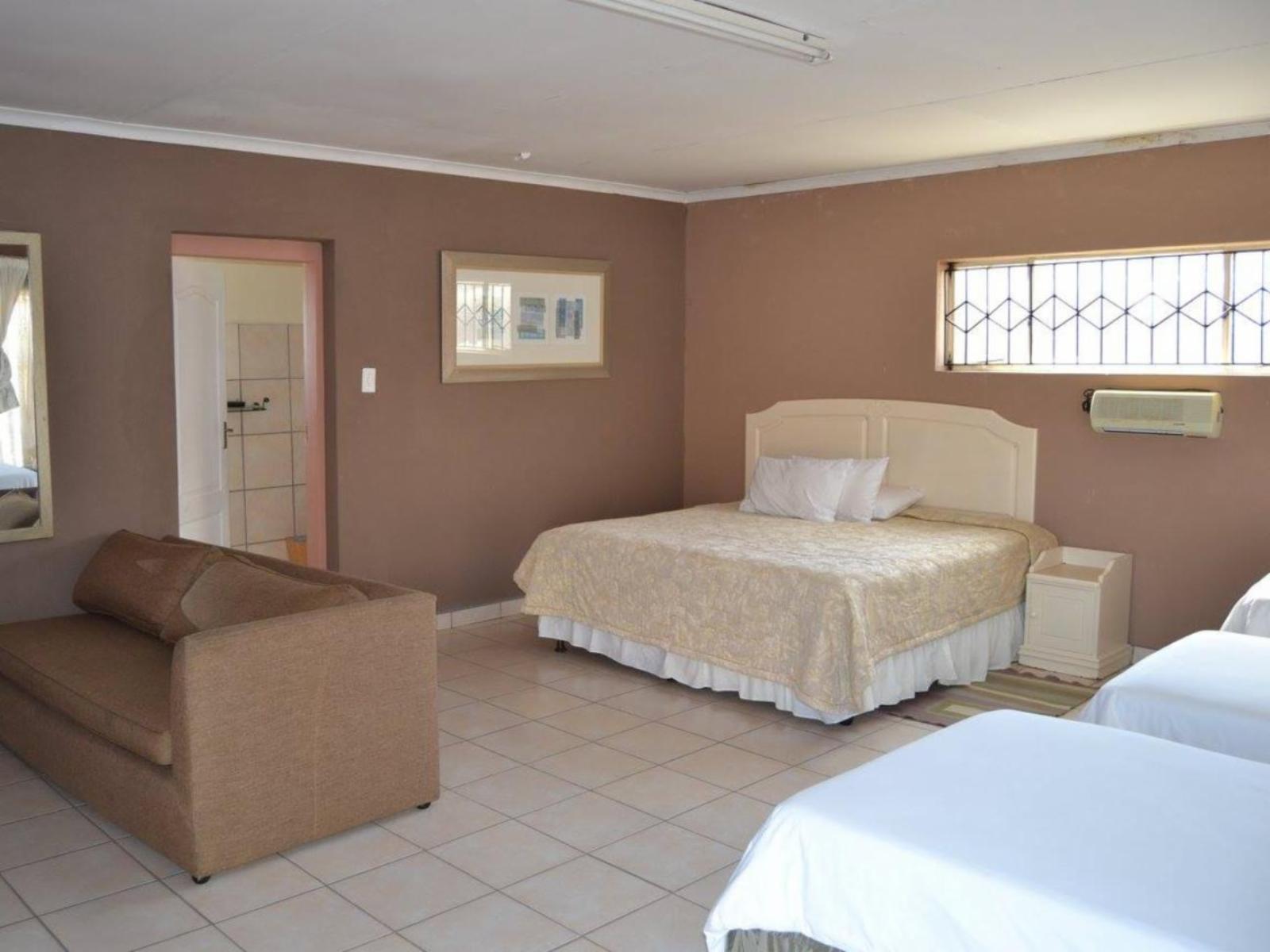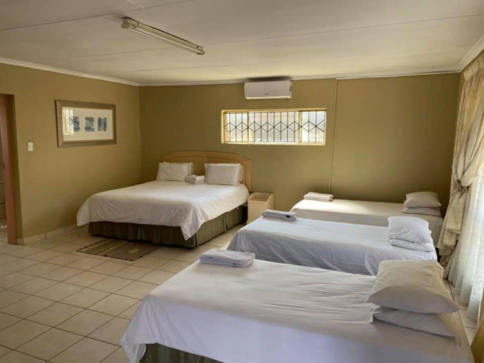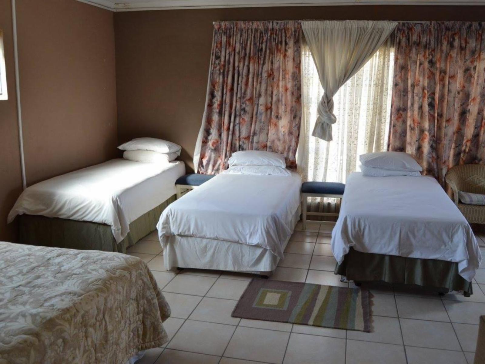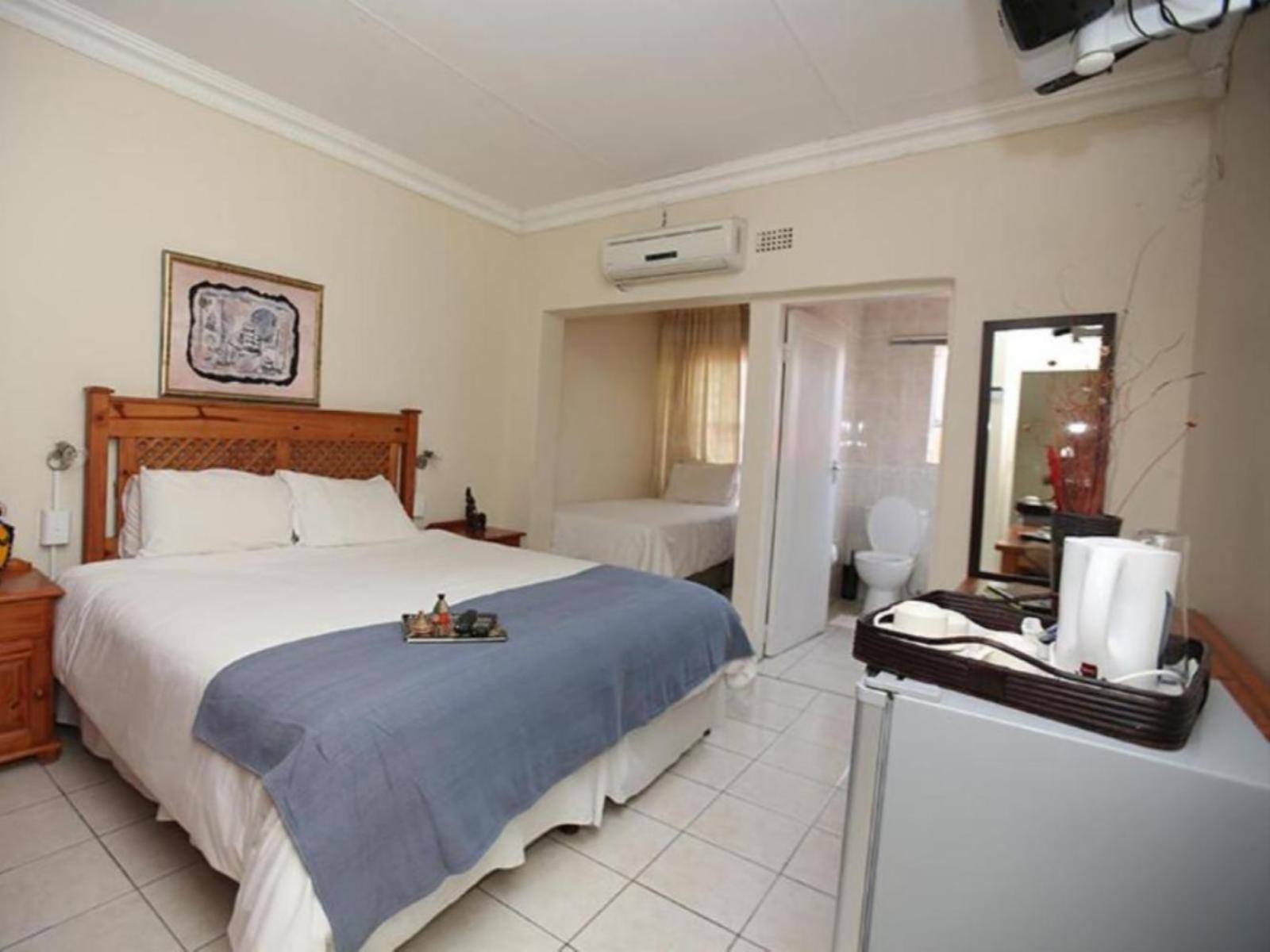 Each of these spacious rooms has one double bed and three single beds, making it a great option for families. These air-conditioned rooms also have en-suite bathrooms, tea and coffee facilities, TVs with DStv access, and bar fridges.