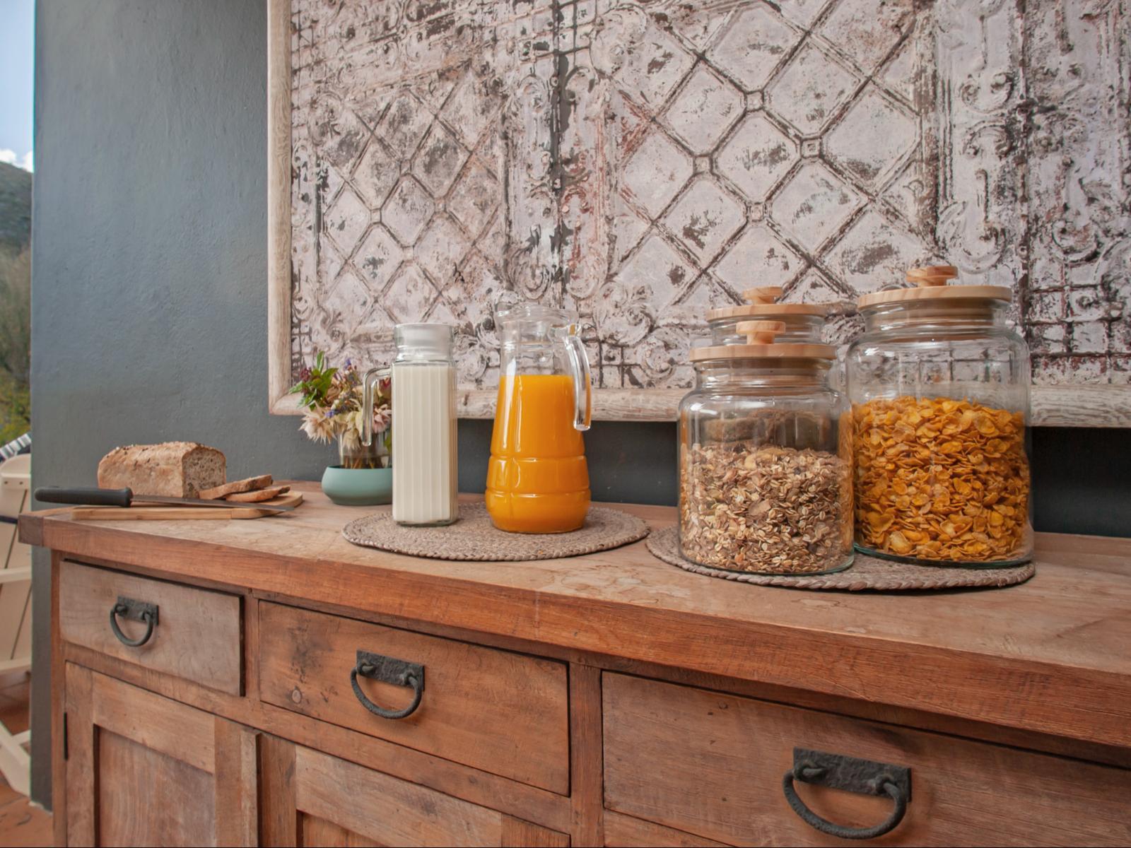 The Leopard Suite has a private balcony with mountain and valley views, en-suite shower, walk-in wardrobe, safe, hairdryer, tea and coffee station with water, bathrobes, toiletries, and extra-length king-size bed convertible to two singles extra-length.