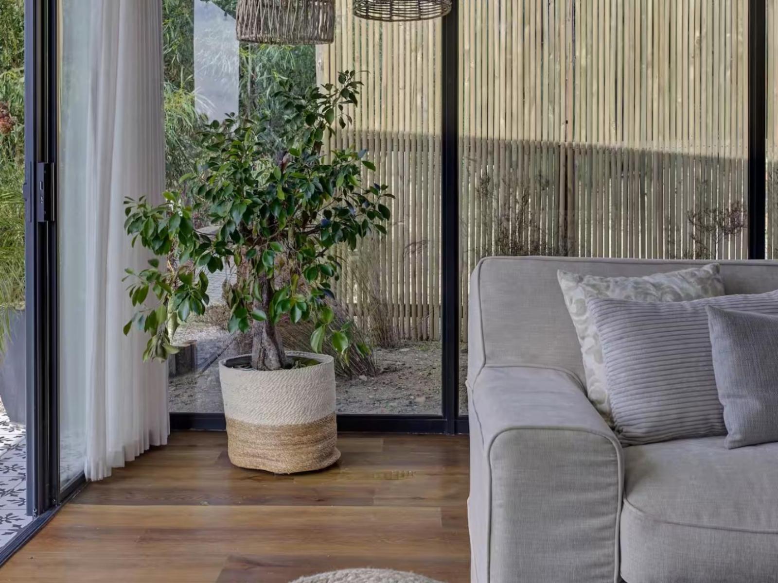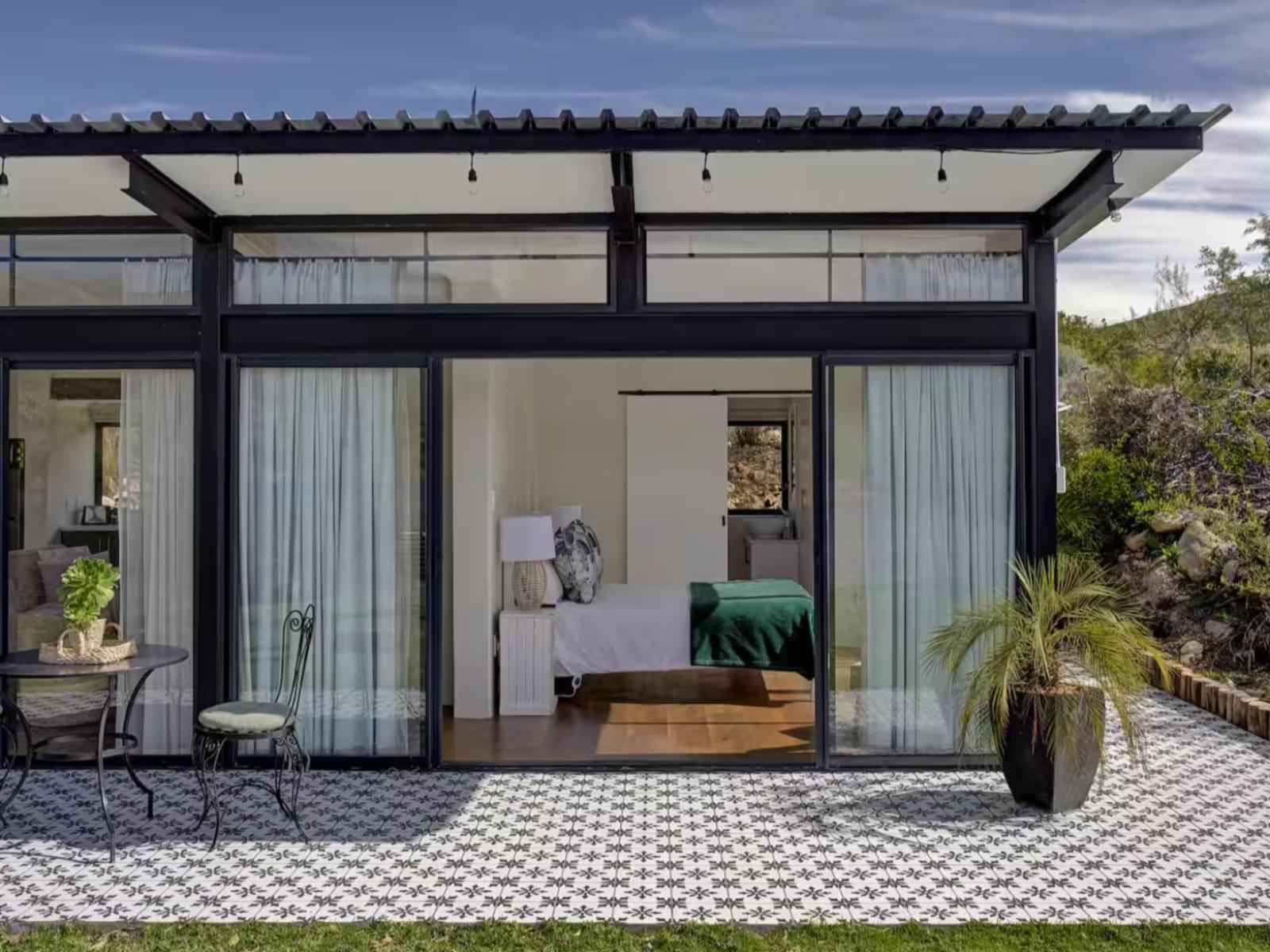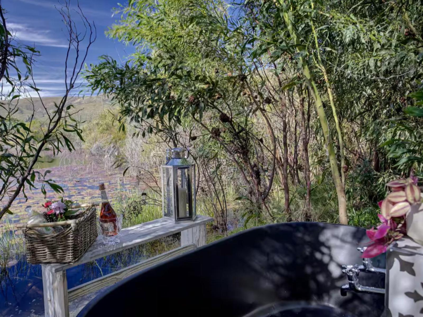 Lily Pond is a secluded yet romantic luxury cottage located on a scenic, tranquil estate in Worcester, approximately an hour and a half from Cape Town International Airport. Guests can enjoy a serene, tranquil break away from busy city life. Lily Pond is set on a natural pond brimming with incredible bird life, creating a serene atmosphere unmatched anywhere else. With no other cottages in sight and located on a picturesque wine farm, it offers a rare blend of privacy and luxury. The bedroom is furnished with a double bed, and the en-suite bathroom contains a shower. Sliding doors open onto a terrace, where the indulgent outdoor bath overlooks the pond. The open-plan kitchen contains a fridge, a gas stove with an oven, a kettle, a toaster, and other appliances for self-catering. The adjacent living area leads out onto the patio and garden, overlooking the estate. Free Wi-Fi access and a smart TV/Netflix are available. Laundry services are available on request, free of charge. This luxury cottage, combined with the beautiful walking trails, enhances the sense of peace and seclusion, making this retreat truly one of a kind. As a valued guest at Lily Pond, we are pleased to offer you a wine tasting at BC Wines, with no cost to you, as we are members of BC Wines. It’s a wonderful opportunity to sample some of the finest wines in the area.