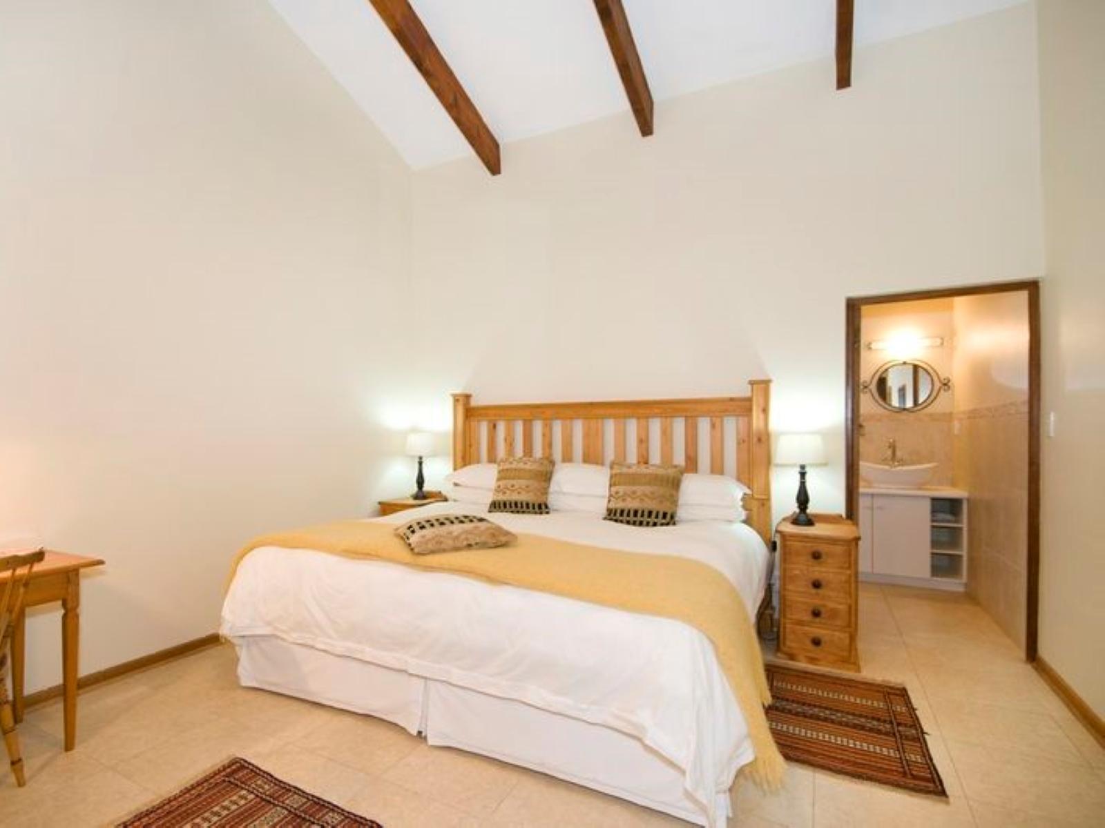 Luxurious bedroom with extra-length, extra-super king bed or two, three-quarter beds. Additional 3 quarter bed for third adult or child. Full en-suite bathroom with double walk-in shower and a double outdoor shower. Comfortably furnished covered patio.