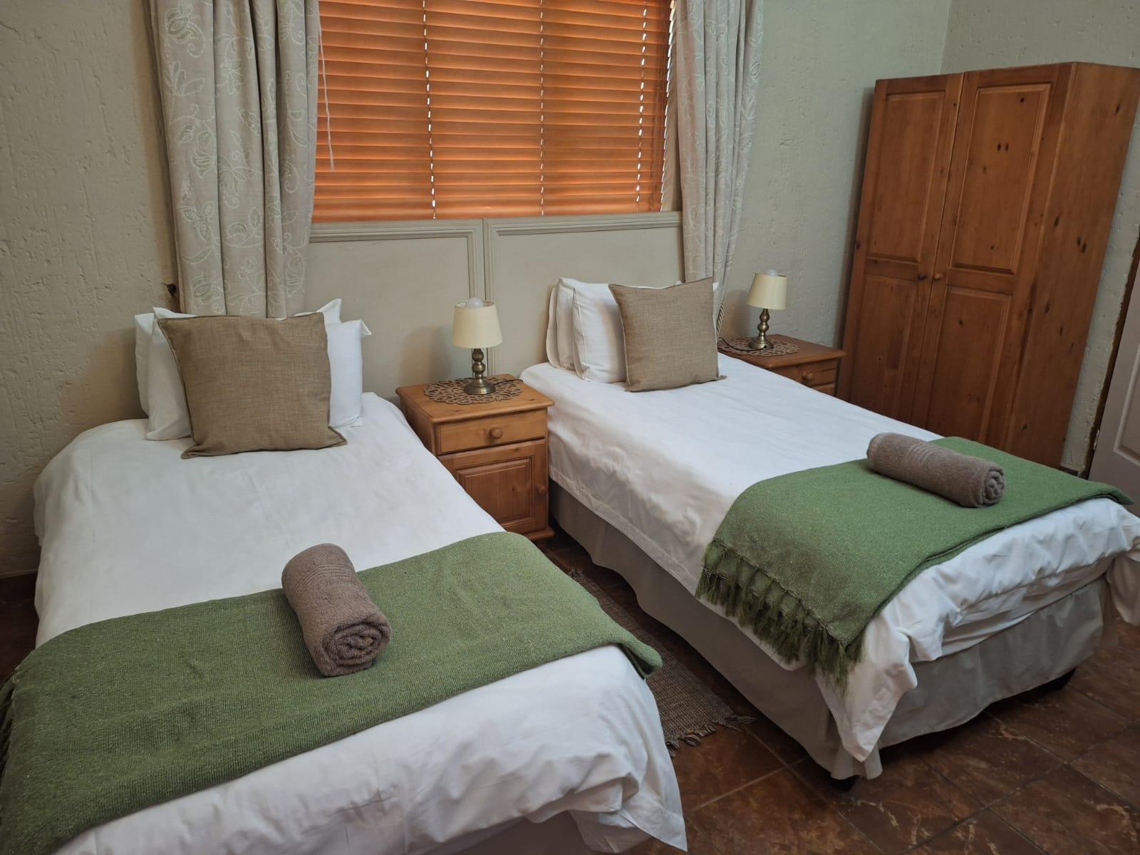 This self-catering unit includes a king bed that can be split into twin beds, and a living room with 3 single beds (optional). It includes a full kitchen, a shower-only bathroom, and a patio with braai facilities.