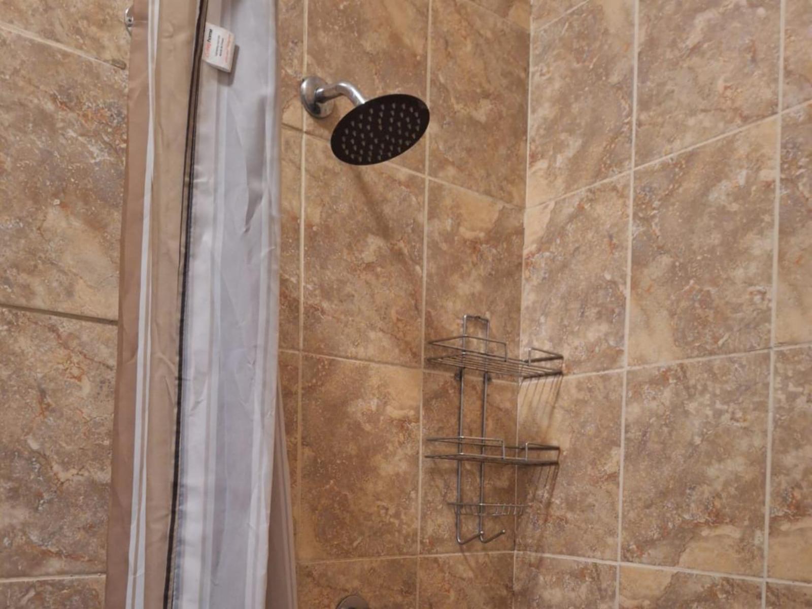 This room includes a queen bed and a shower-only bathroom. It features a bar fridge and a fan for convenience, a desk and free Wi-Fi for business use, and a TV for entertainment. Guests have access to a communal seating area with a coffee station.