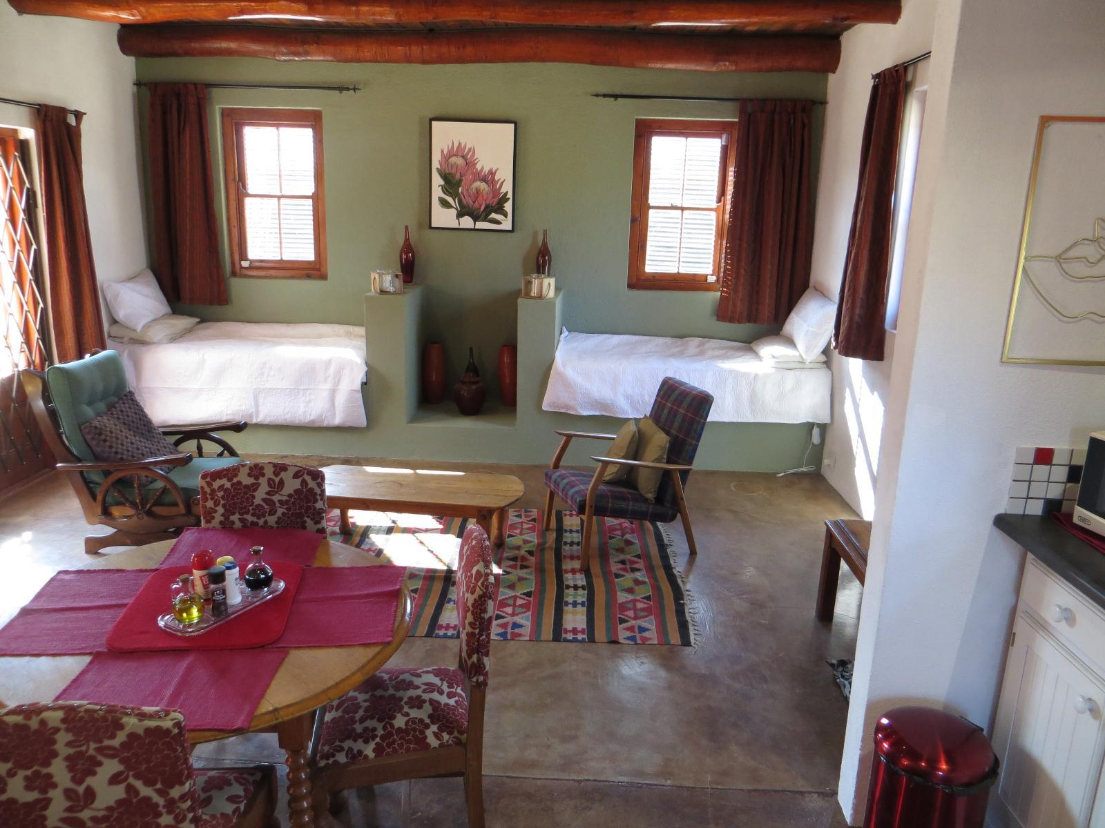 Whether you're travelling light or settling in for a longer stay, Mountain View Cottages offers two inviting options designed to suit your pace and style. Tucked in a quiet spot with a laid-back vibe, both units are self-catering and share a charming communal picnic table - the perfect place to sip your morning coffee or unwind after a day of exploring. Our Two Sleeper Room is a compact, comfortable space ideal for solo travellers or couples. It features two single beds in the lounge, a private shower, and a basic kitchenette equipped with a gas plate, fridge, utensils, cutlery, and crockery. You'll also enjoy complimentary Wi-Fi, tea and coffee-making facilities, and a braai for relaxed outdoor meals. Simple, convenient, and just what you need for a restful stop. The Four Sleeper Cottage offers a bit more room to stretch out, making it perfect for families or small groups. It sleeps up to four guests with a King-size bed in the bedroom and two single beds in the lounge area. The kitchen includes all the essentials, while the private outdoor braai area with seating invites lazy afternoons and long evenings under the stars. With Wi-Fi, a hot shower, and all the comforts of home, it’s an ideal retreat after a day on the road.