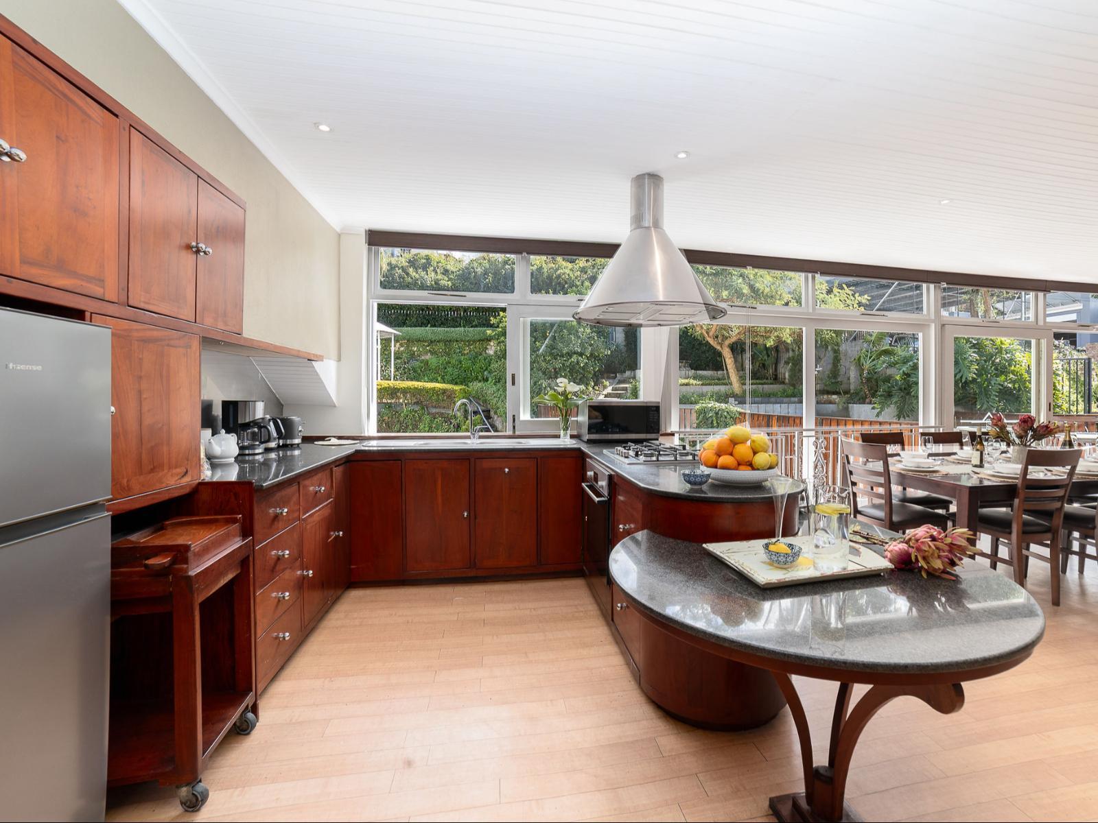 This family apartment features four bedrooms, including a loft room, a balcony, fireplace, spacious lounge, and an indoor braai. It offers two bathrooms, a separate guest toilet, a large open-plan kitchen, and an inviting outdoor dining area.