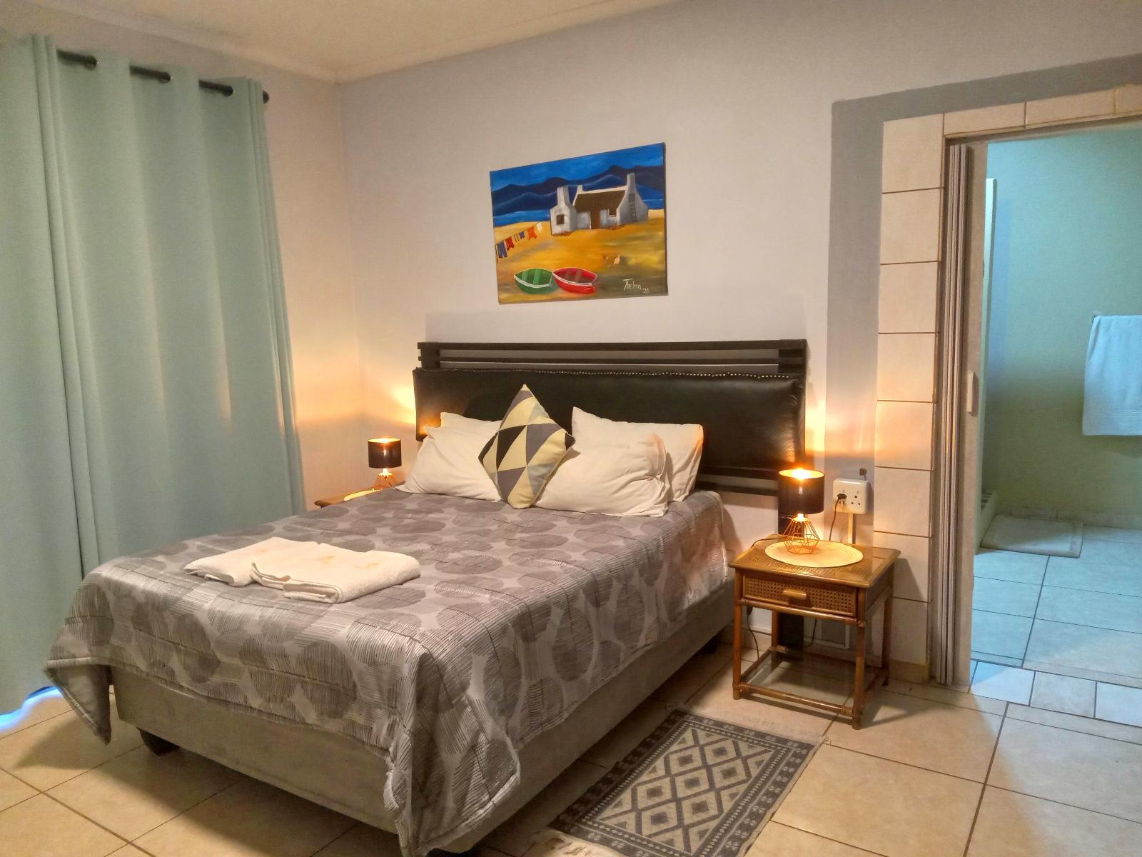 En-suite with shower Only. The room has a Queen size bed, TV, OVHD, kettle, own private entrance. Breakfast is optional at R85 per person. Breakfast is served @ The Flying Dutchman restaurant 150 metres from the B&B