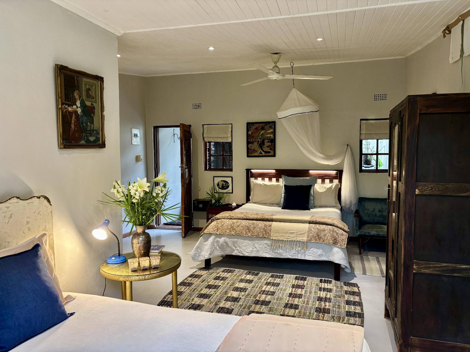 Semi-detached private unit under big trees with a private balcony overlooking the garden towards the swimming pool. Bathroom en-suite with tub & shower. PLEASE NOTE: All meals need to be booked 24 hours prior to arrival.