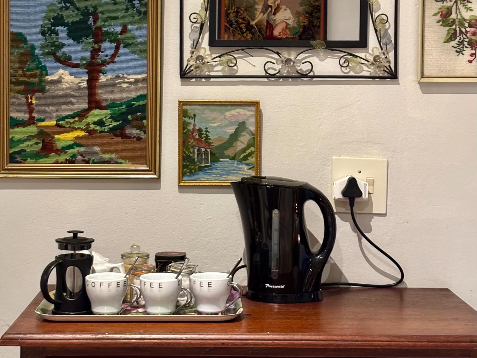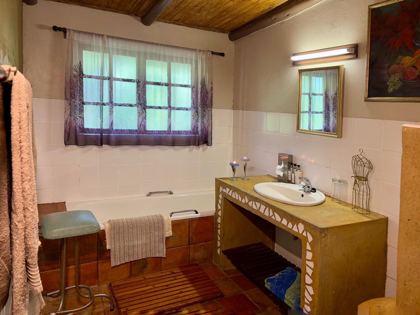 A convenient Self-Catering or B&B unit with a compact kitchenette on the balcony overlooking the garden. It consists of 2 separate bedrooms, 2 en-suite bathrooms, tub and shower. PLEASE NOTE: All meals need to be booked 24 hours prior to arrival.