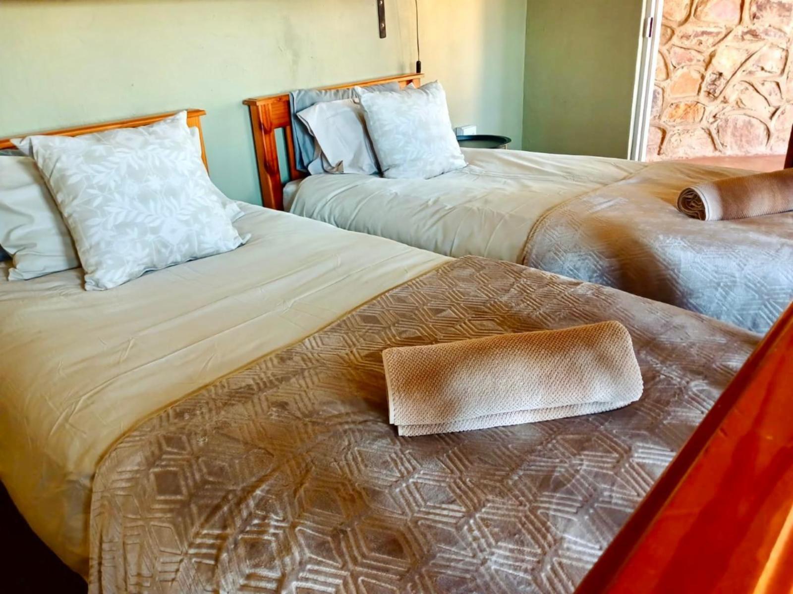 At the miner's stamp mill, a large family room with a king-bed and a single bed and an en-suite with a shower. Patio. The self-catering facility is a well-equipped communal kitchen and lounge.