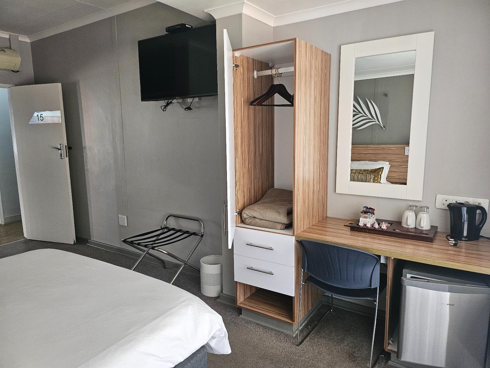 Palm on 12 has welcomed business travellers and tourists with exceptional service since 1999. The Du Toits and their dedicated staff ensure every guest enjoys a warm welcome, a relaxing stay, and the comfort of a well-appointed environment. The lodge offers a variety of spacious rooms, some opening onto the garden to bring the outdoors in. Each room is equipped with coffee and tea facilities, a television with DStv, air conditioning, a bar fridge, a desk, and an en-suite bathroom with amenities. Guests can also enjoy safe parking, braai facilities around the pool, and airport transfers on request. All rooms are non-smoking in line with government regulations, though poolside rooms have direct access to a designated smoking area. A back-up solar system and water supply ensure uninterrupted lights, Wi-Fi, and water during outages.