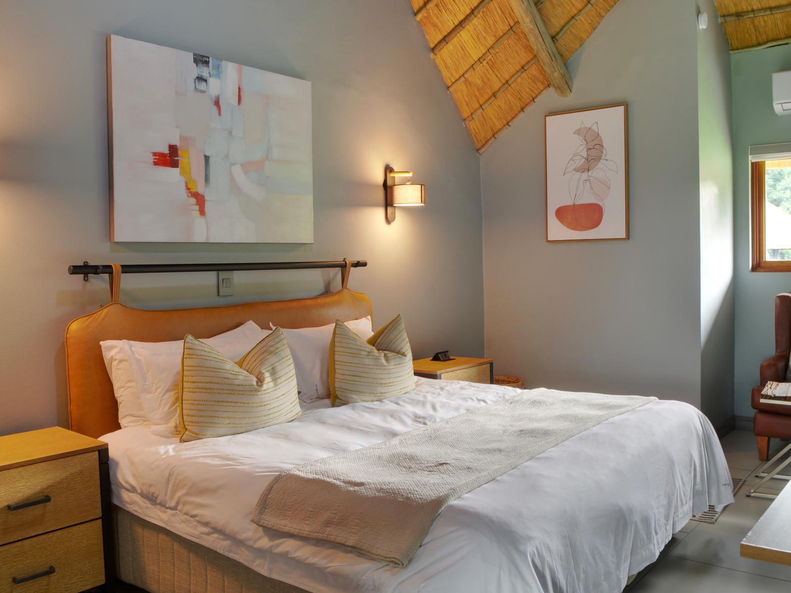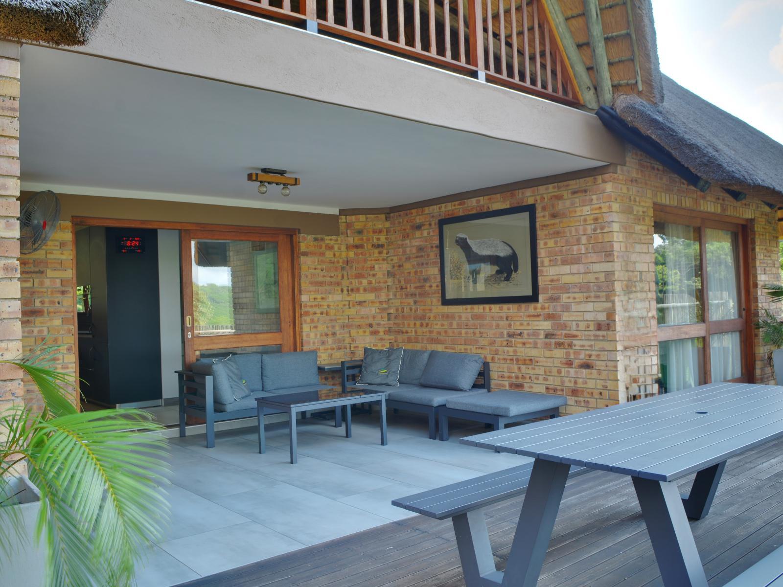 Pangane M Properties @ Kruger Park Lodge is set amidst natural bush, attracting impala and a wide variety of beautiful and unusual bird life. Hippos live in the nearby dam and can be safely viewed at close quarters from the hippo hide. Set on a beautifully landscaped Gary Player-designed golf course along the Sabie River, the lodge provides a serene and picturesque retreat. The Deluxe Holiday Home-571B has 3 bedrooms and 3 bathrooms. The main bedroom is situated upstairs and features a queen bed along with an en-suite bathroom that includes a separate bath and shower for added convenience. The balcony offers stunning views of the surroundings. The second bedroom also includes a queen bed with an en-suite shower for a comfortable stay. The third bedroom provides two single beds and offers access to a private bathroom with a bath. The kitchen is fully equipped with an oven, microwave, fridge and a variety of crockery and cutlery, ensuring that guests have everything they need for meal preparation. The living room is equipped with a TV featuring smart apps such as Netflix, and Disney, allowing for personalised streaming with your sign-in. Meals can be enjoyed either at the dining table or alfresco on the outdoor patio, complete with a built-in BBQ/Braai. The pool area features outdoor seating and offers magnificent views of the surrounding area, providing a serene space to relax and enjoy the natural beauty of Hazyview. Guests can enjoy Wi-Fi throughout the property, ensuring seamless connectivity. Additionally, safe and secure parking is provided, giving you peace of mind during your stay. Pangane M Properties @ Kruger Park Lodge provides a great base for exploring the Kruger National Park, with the Phabeni Gate only ten minutes away.