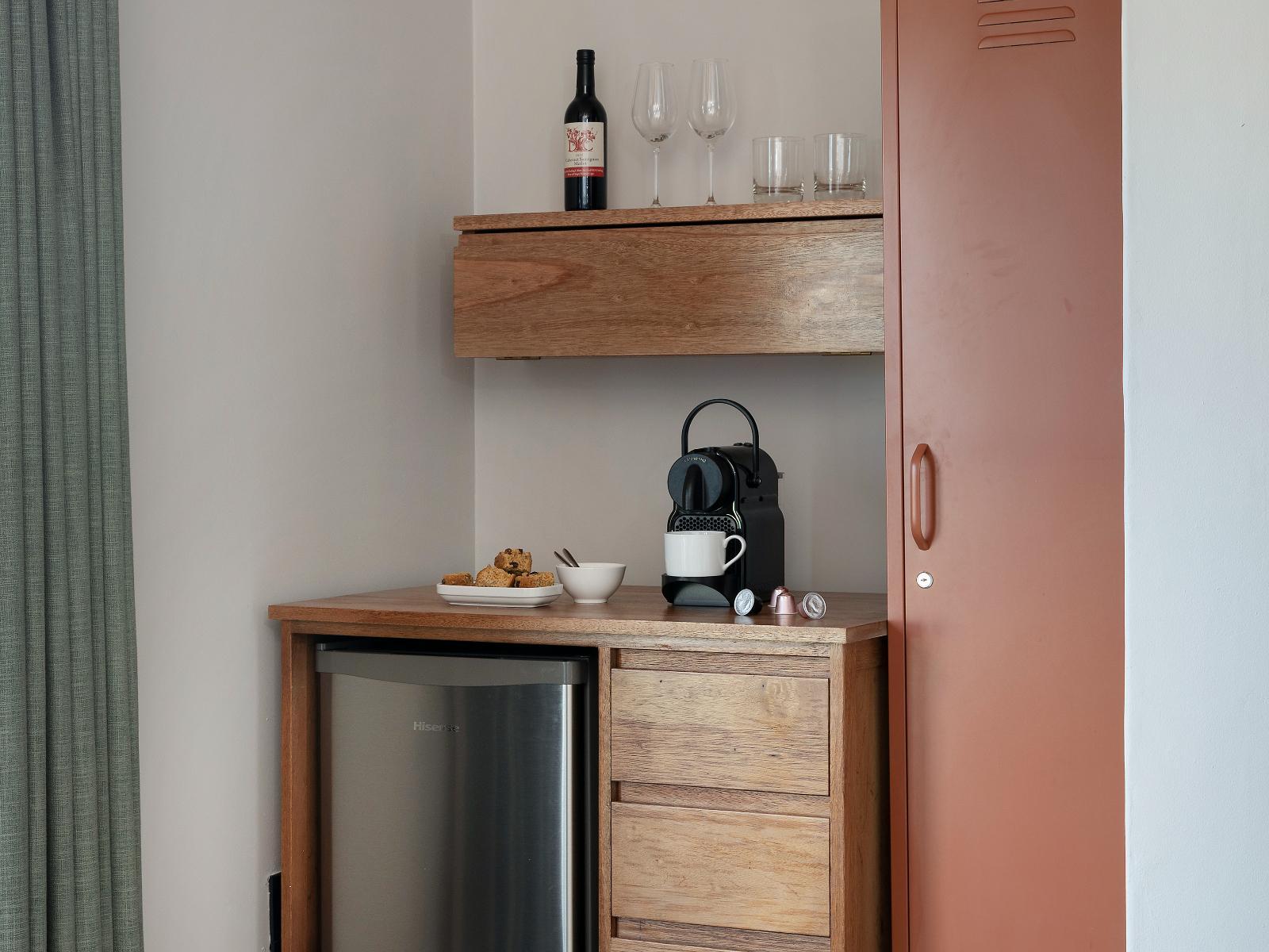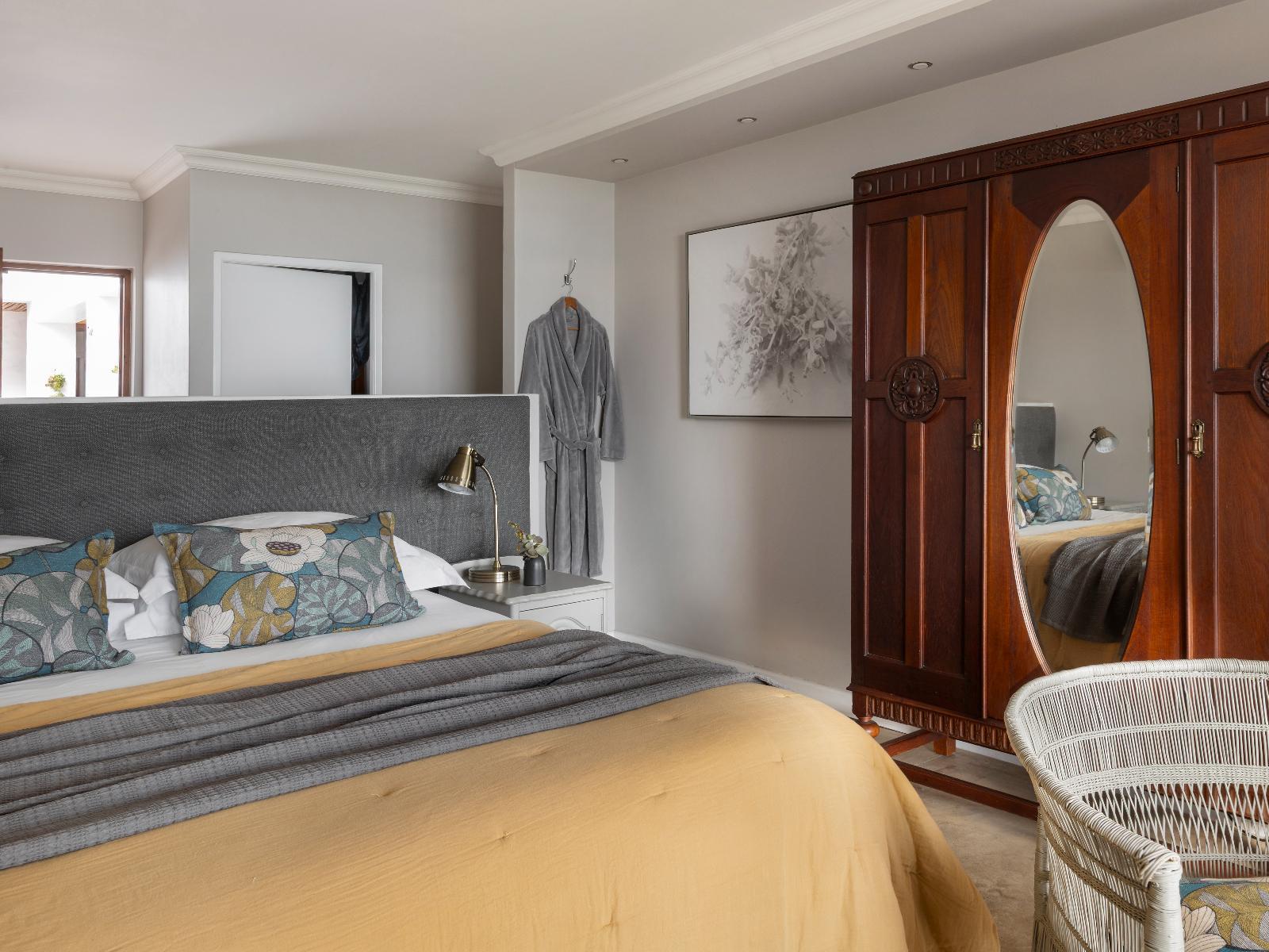Luxury queen sea facing first floor room. En suite shower. DSTV. Mini bar fridge. Coffee & tea station. Heated towel rail. Air conditioning and bathrobes.