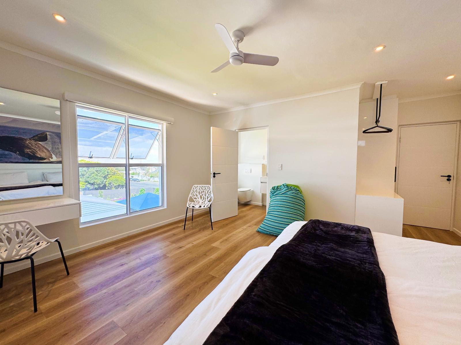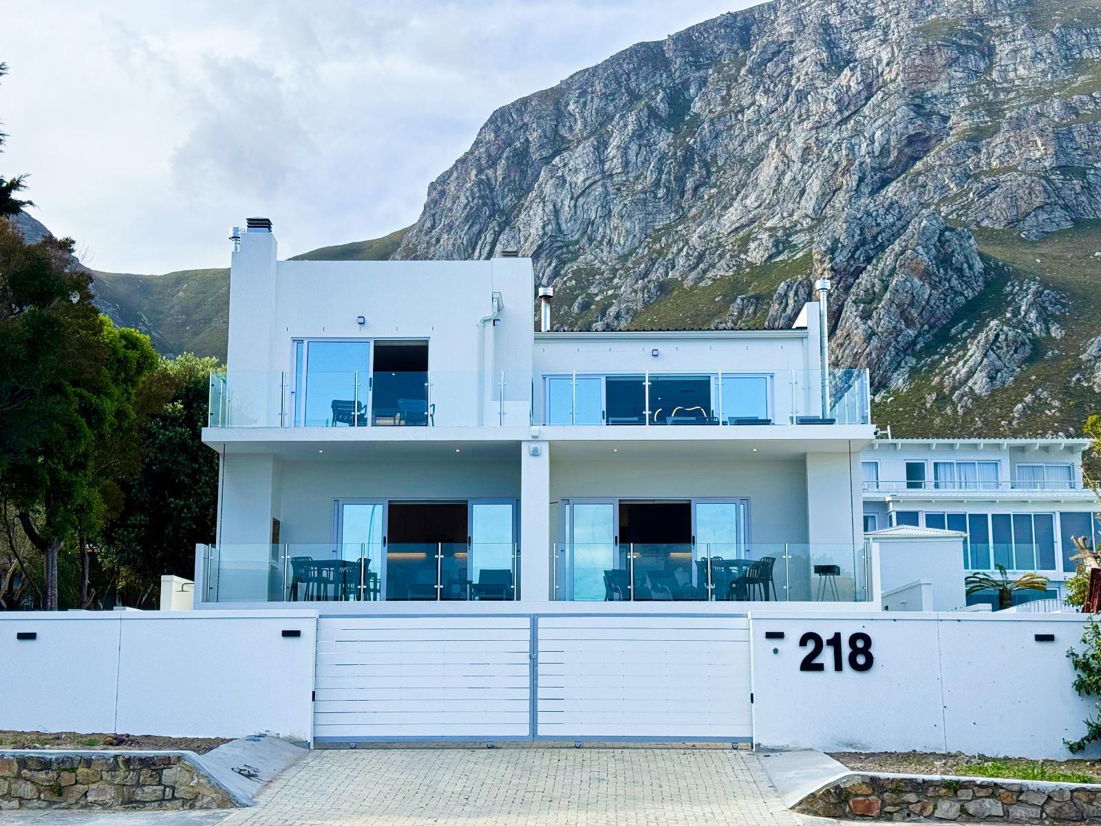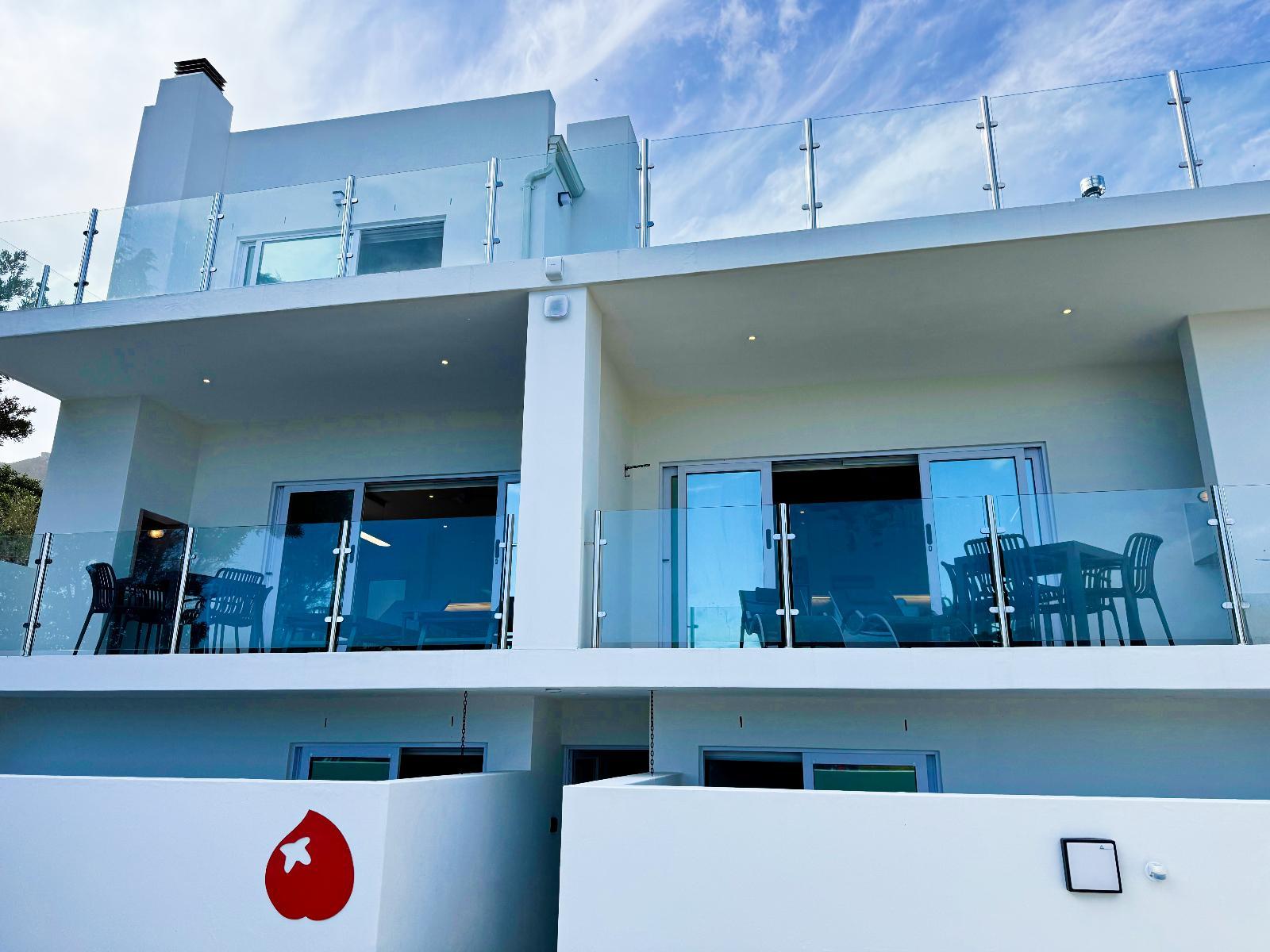 Bright and modern boutique units overlooking Grotto Beach in whale-watching paradise Hermanus. Solar system for uninterrupted power. State-of-the-art kitchens, big living/dining rooms, all bedrooms with en-suite bathrooms, private braai facilities, sea view from the apartments/penthouse. Peach on Beach Boutique Apartments is the ideal choice for local and international travellers who are looking for a modern and private 4-star accommodation in the most desired area of Hermanus. Hermanus is renowned for being a prime land-based whale-watching location, especially from June to November when Southern Right Whales visit Walker Bay. From the apartment’s balconies at our Peach on Beach location, you can watch the whales playing in the sea. Hermanus is a paradise for golfers and kitesurfers (and other water sports enthusiasts), and it is just a short walk from our Peach on Beach location to blue-flag Grotto Beach and Klein River Lagoon. Peach on Beach Boutique Apartments offers 5 modern units – two 1-bedroom studios, two 2-bedroom apartments, and one 3-bedroom Penthouse. Units can be rented individually and guarantee total privacy with separate entrances. It is possible, as well, to rent the whole property as one house with 9 bedrooms or 4 bedrooms when renting the two 2-bedroom apartments together (connecting door) or 5 bedrooms when you rent the Penthouse and one 2-bedroom apartment together (connecting door) or 7 bedrooms if you rent the Penthouse together with the two 2-bedroom apartments together (connecting doors). Please contact us at hello@peach.africa for enquiries. A solar system with batteries guarantees uninterrupted power. All units offer state-of-the-art kitchens, big living/dining rooms, all bedrooms with ensuite bathrooms, braai facilities on each balcony, and iconic sea views from apartments. The Penthouse offers a fully equipped state-of-the-art kitchen with bar counter, big dining room and living room areas with 50’ smart TV and Netflix, fireplace and a huge terrace with braai - all with amazing sea-views (and whale views – when lucky). The master bedroom offers sea- and mountain views with an open-plan bathroom including a freestanding designer bath tub, separate rain-forest shower and 50’ smart TV with Netflix. Please contact us if you are looking for Kitesurf Lessons or Equipment Rental, as we have our own IKO-certified Peach on Beach Boutique Kitesurf School. Golfers, please contact us if you would like to get some golf safari tips from Peter (Peach) or if you would like him to join you for a round. Please contact us at hello@peach.africa.
