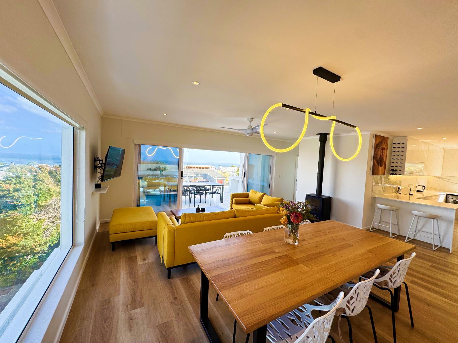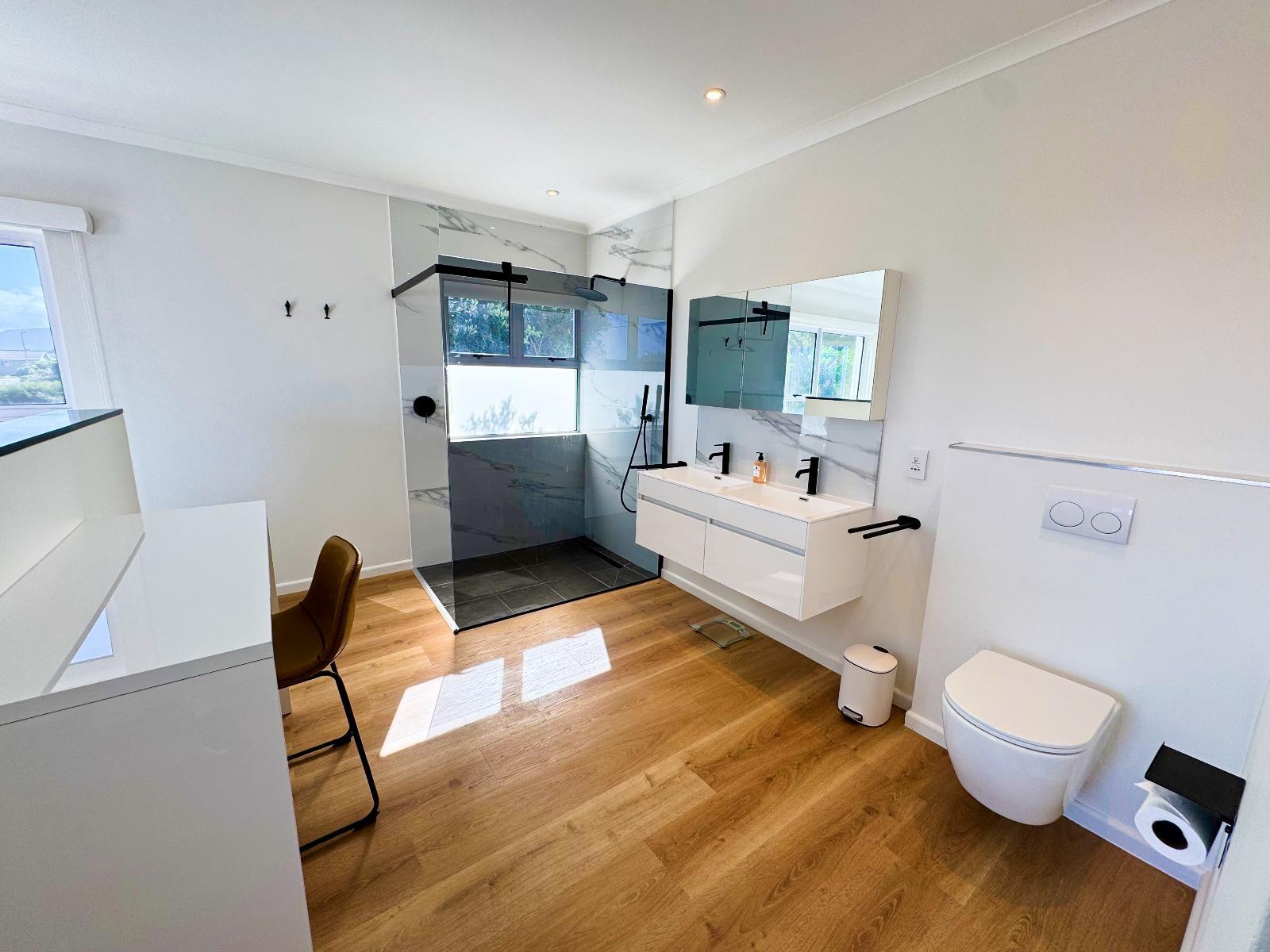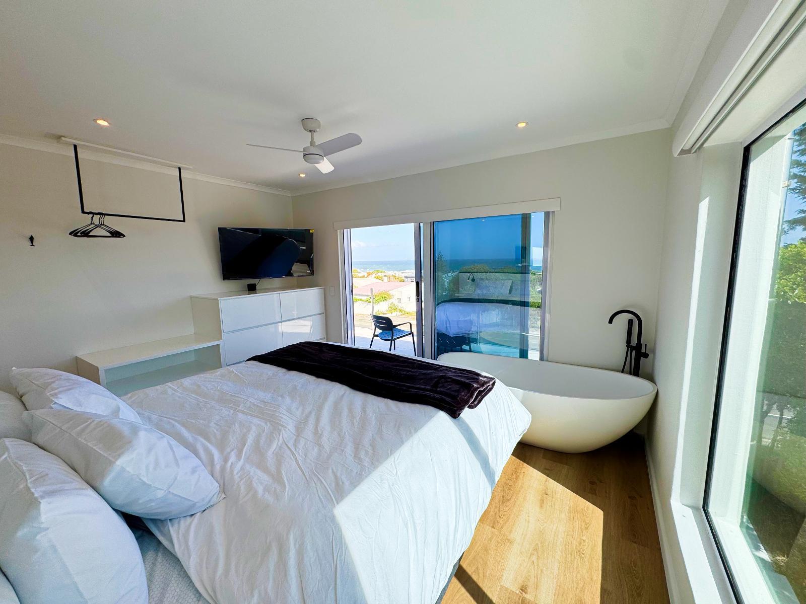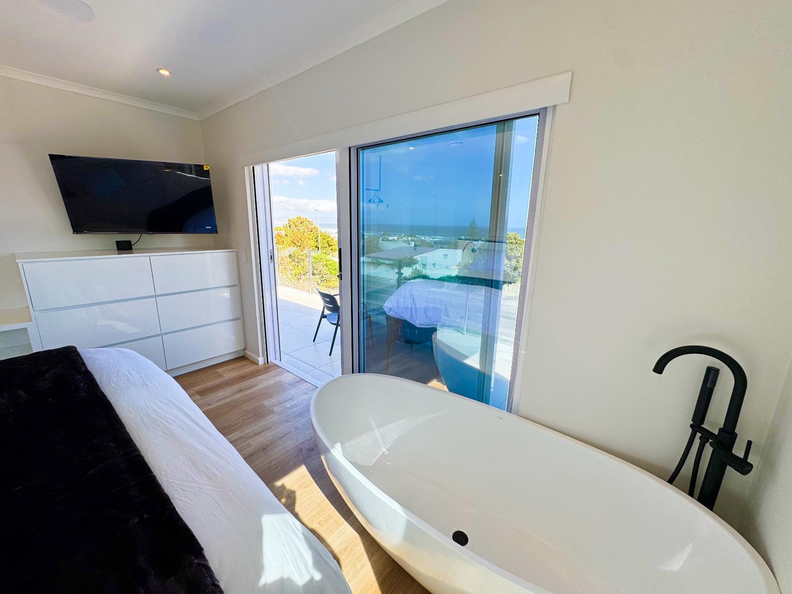 Bright and modern boutique units overlooking Grotto Beach in whale-watching paradise Hermanus. Solar system for uninterrupted power. State-of-the-art kitchens, big living/dining rooms, all bedrooms with en-suite bathrooms, private braai facilities, sea view from the apartments/penthouse. Peach on Beach Boutique Apartments is the ideal choice for local and international travellers who are looking for a modern and private 4-star accommodation in the most desired area of Hermanus. Hermanus is renowned for being a prime land-based whale-watching location, especially from June to November when Southern Right Whales visit Walker Bay. From the apartment’s balconies at our Peach on Beach location, you can watch the whales playing in the sea. Hermanus is a paradise for golfers and kitesurfers (and other water sports enthusiasts), and it is just a short walk from our Peach on Beach location to blue-flag Grotto Beach and Klein River Lagoon. Peach on Beach Boutique Apartments offers 5 modern units – two 1-bedroom studios, two 2-bedroom apartments, and one 3-bedroom Penthouse. Units can be rented individually and guarantee total privacy with separate entrances. It is possible, as well, to rent the whole property as one house with 9 bedrooms or 4 bedrooms when renting the two 2-bedroom apartments together (connecting door) or 5 bedrooms when you rent the Penthouse and one 2-bedroom apartment together (connecting door) or 7 bedrooms if you rent the Penthouse together with the two 2-bedroom apartments together (connecting doors). Please contact us at hello@peach.africa for enquiries. A solar system with batteries guarantees uninterrupted power. All units offer state-of-the-art kitchens, big living/dining rooms, all bedrooms with ensuite bathrooms, braai facilities on each balcony, and iconic sea views from apartments. The Penthouse offers a fully equipped state-of-the-art kitchen with bar counter, big dining room and living room areas with 50’ smart TV and Netflix, fireplace and a huge terrace with braai - all with amazing sea-views (and whale views – when lucky). The master bedroom offers sea- and mountain views with an open-plan bathroom including a freestanding designer bath tub, separate rain-forest shower and 50’ smart TV with Netflix. Please contact us if you are looking for Kitesurf Lessons or Equipment Rental, as we have our own IKO-certified Peach on Beach Boutique Kitesurf School. Golfers, please contact us if you would like to get some golf safari tips from Peter (Peach) or if you would like him to join you for a round. Please contact us at hello@peach.africa.