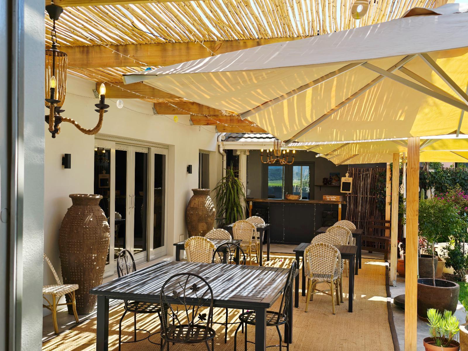 The Concept: Welcome to a dreamy place nestled perfectly between a big hotel and a small guesthouse. Here, you can immerse yourself in a unique blend of wellness and relaxation. Experience a rejuvenating break in our private pool wellness villas, deluxe rooms, or suites—a true home away from home. Whether you're seeking a weekend escape or a longer retreat, we have just the place for you. The Space: Each of our spacious en-suite rooms and suites offers a distinctive combination of colour, material, and decoration. Some even boast private splash pools, jacuzzis, and saunas within the room. Our two villas provide total privacy with self-catering facilities, a jacuzzi, sauna, and a private splash pool. The Style: Our accommodation was completely renovated in 2023, showcasing a delightful marriage of classic and trendy European styles with a touch of 'L'Afrique c'est chic'. The décor features timeless black and white classics, always with a hint of glamour, sometimes delightfully over the top. We incorporate designer and non-designer pieces from all around the world. Petite Note: We offer our own spa and sauna centre on the premises. To make the most of your stay, consider adding a half or full-day package, or treat yourself to a massage. We recommend booking these in advance to avoid disappointment. While we don't have a restaurant on site, there is a fantastic selection of restaurants, shops, and takeaways just a minute's drive away. For more information on dining and activities, please visit our website.