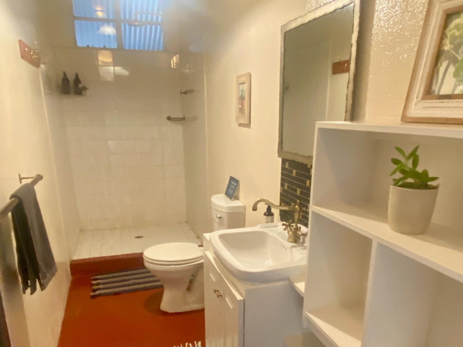 Lovely small studio apartment with high wooden ceilings and a king bed/two single beds, kitchenette with microwave and bar fridge. The bathroom is part of the room and has a shower. The room opens onto a private patio and the peaceful courtyard.