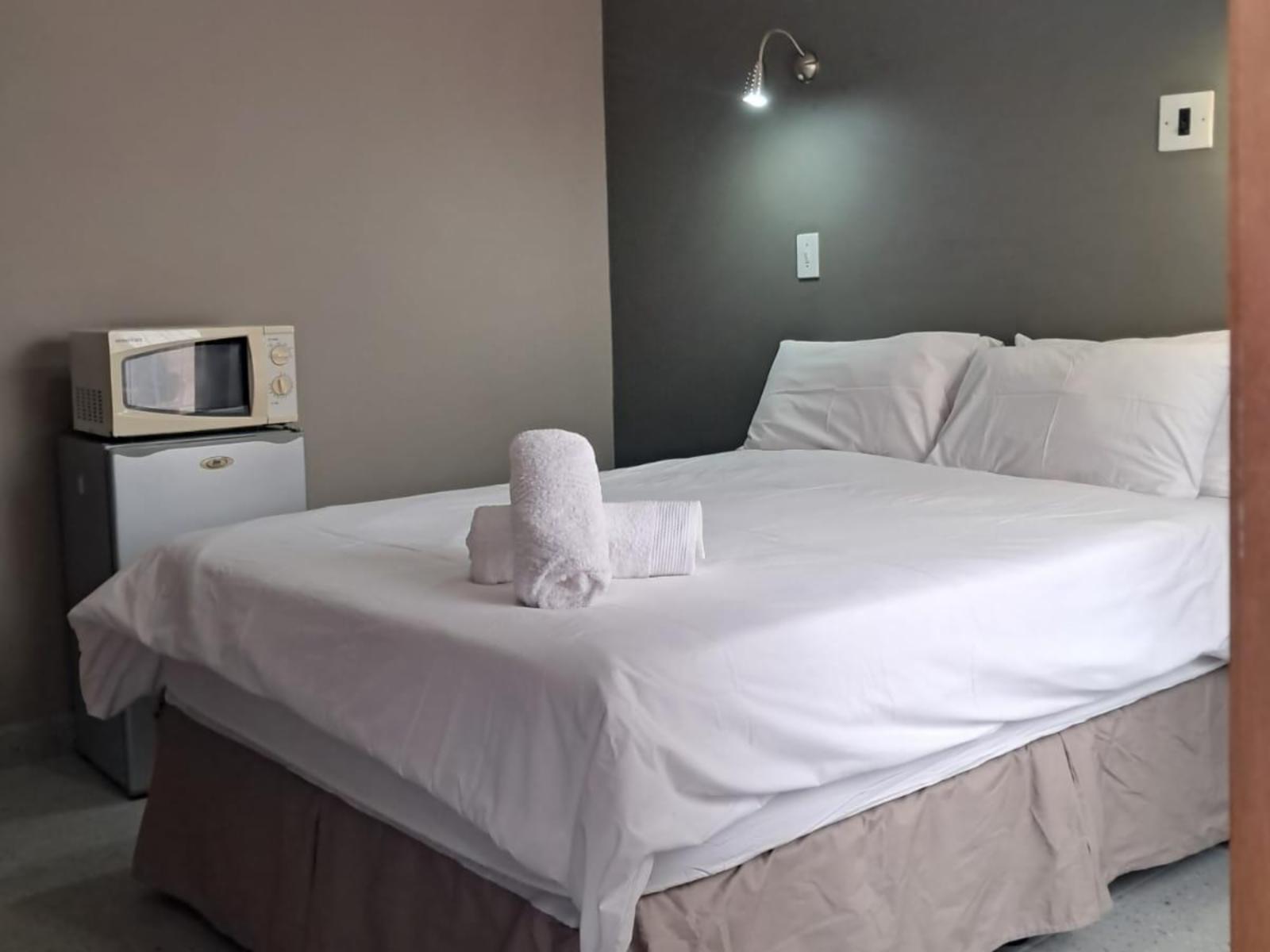 This is standard double bed in room with en-suite bathroom. Room has small kitchenette, with a shower. Basic DStv package. Room has Air-Conditioning,coffee making facilities and microwave.Small patio in front of room. Daily cleaning service.