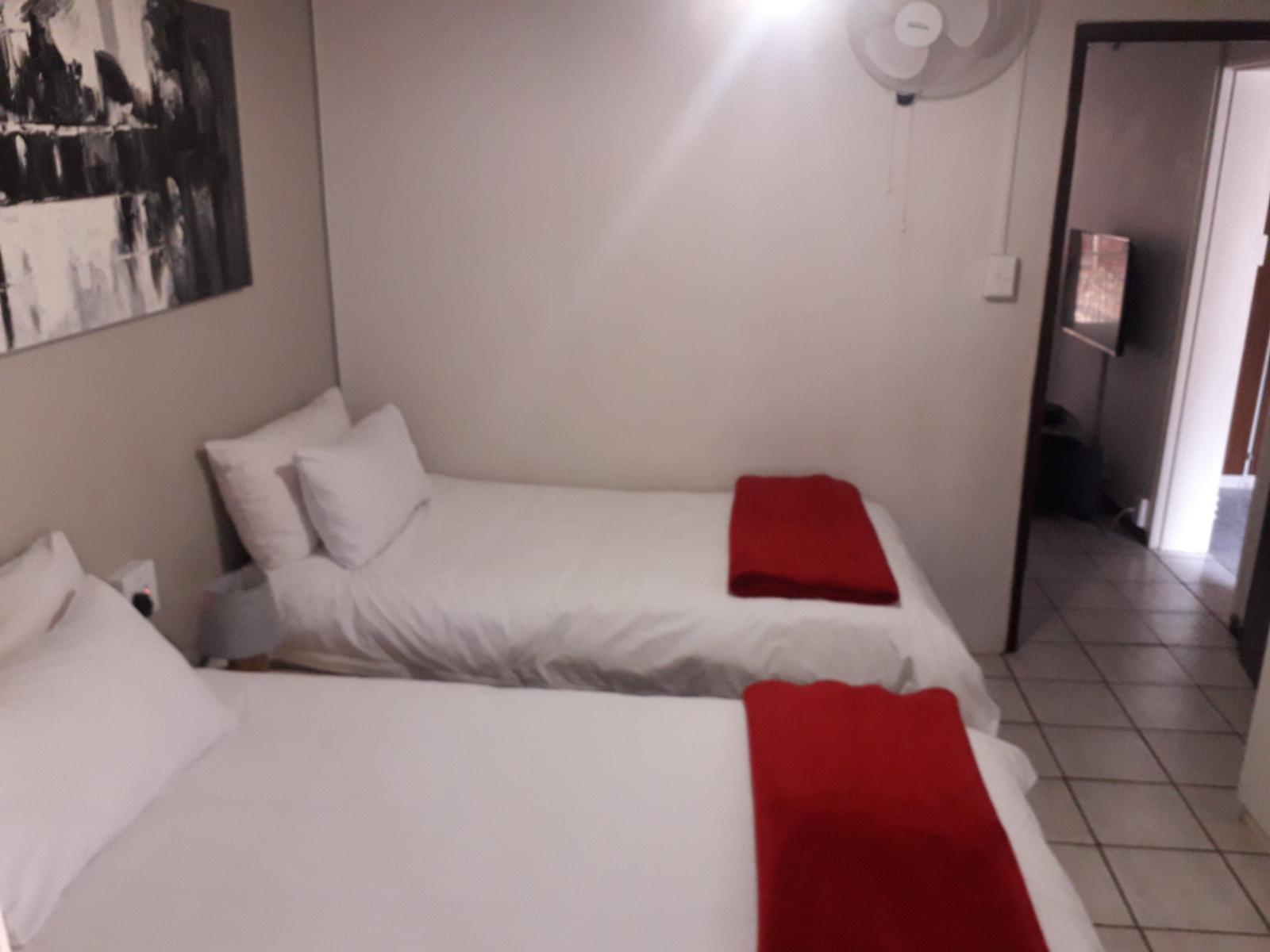 Protea Park Self-catering offers accommodation in a leafy suburb located in Rustenburg. The quaint town is surrounded by the Magaliesberg Mountains and is ideally located near Sun City, several game parks, historic and natural attractions. The 2 apartments comprise of 2 self catering units only. Unit 1 has 2 bedrooms with a king sized bed in each bedroom, and can accommodate a maximum of 4 guests only. Unit 2 is an open plan apartment with 1 king sized bed and can accommodate a maximum of 2 guests only. On-site parking is provided for 2 vehicles only for Unit 1 and 1 vehicle only for Unit 2.