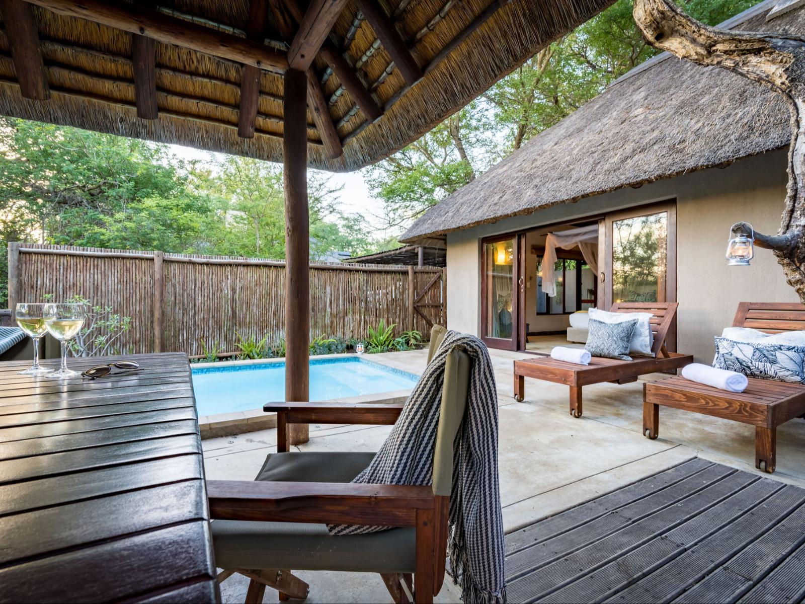 Private pool with braai area, fully equipped kitchen, living room with full DSTV, Two separate bedrooms with a super king bed and two single beds in the second room, each room has its own en-suite bathroom an open plan large bath and Luxury outside shower