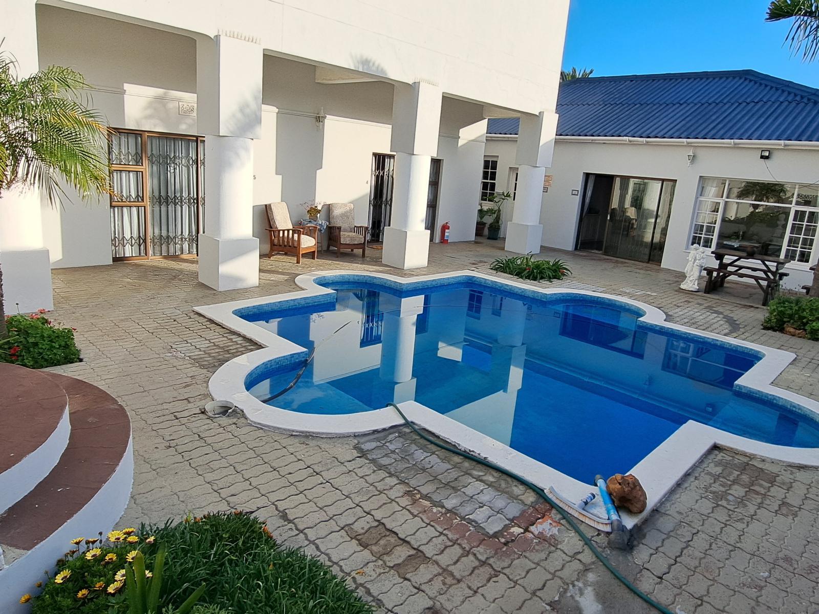 Raston Guest House is under new ownership and managed by the owners themselves. We are committed to providing warm hospitality and comfortable accommodation in the diamond of the West Coast, Lamberts Bay. The Guest House has 5 en-suite bedrooms with crisp white linen and one fully equipped self-care/catering apartment. The interior of the Guest house gives a calm and cosy atmosphere with its wooden floors, Victorian-style trimmings and spacious areas. From the dining room, you will have a view over the sparkling swimming pool and braai facility. Enjoy the tranquil atmosphere. It is ideal for sundowners or quiet relaxation. Please note: Our swimming pool is not child friendly due to the depth. Only children ages 14 years and above are allowed to swim strictly under parents supervision. Our comfortable and private rooms will ensure a good night’s rest that will leave you refreshed and rejuvenated. All our rooms have Satellite TV, tea & coffee facilities, towels, and comfortable seating.