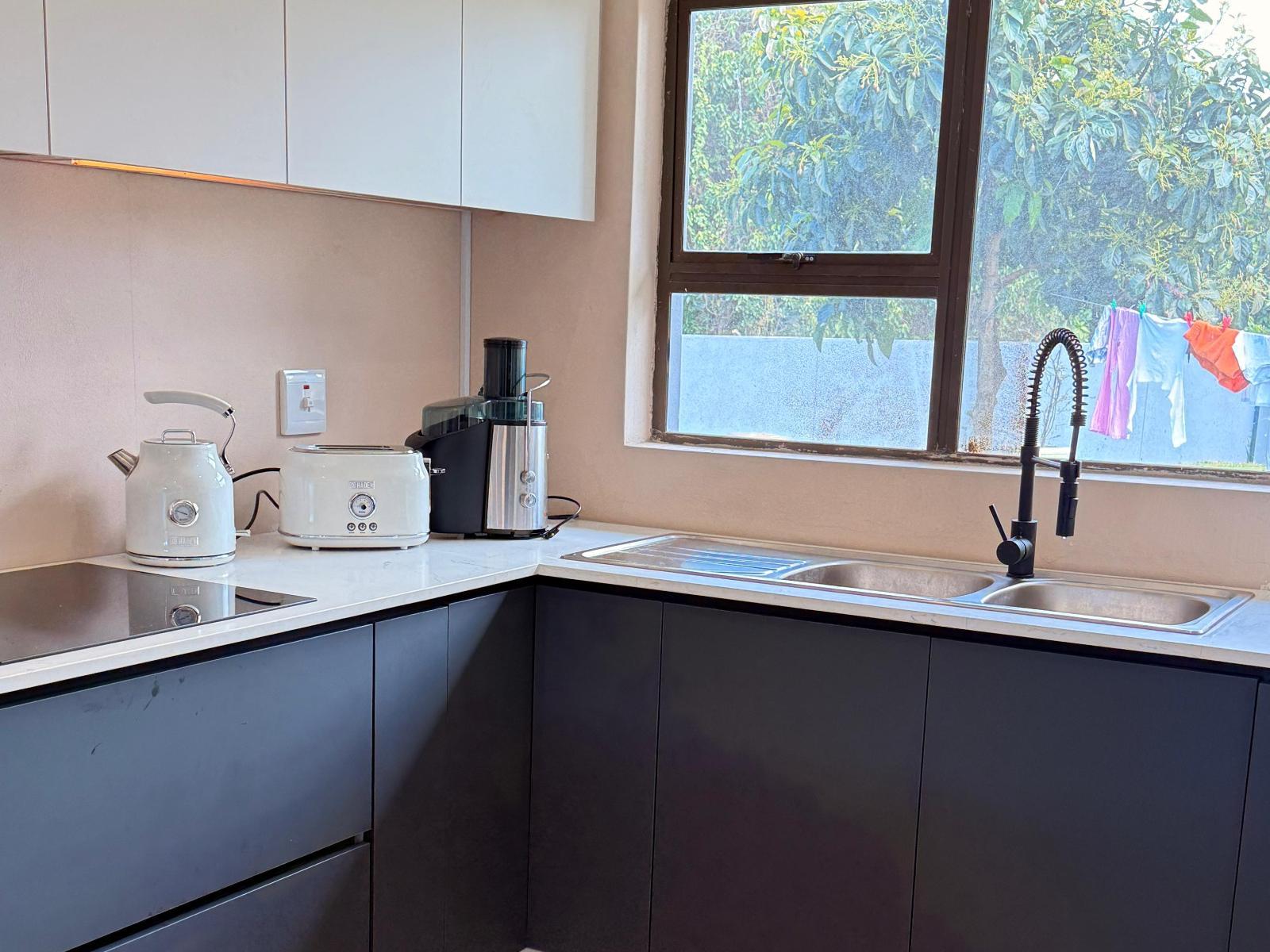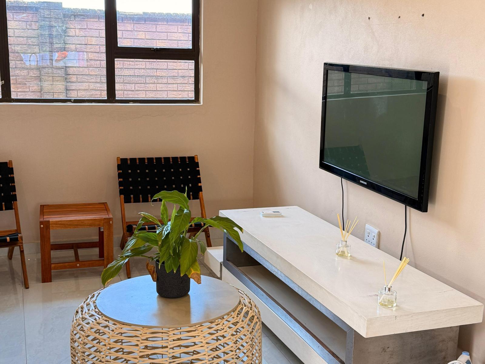 Comfortable Queen Room with en-suite bathroom, air-conditioning, free Wi-Fi, TV, tea and coffee station, and private entrance. Just minutes from Richards Bay Airport with secure parking, pool access, and access to a communal kitchen and lounge.