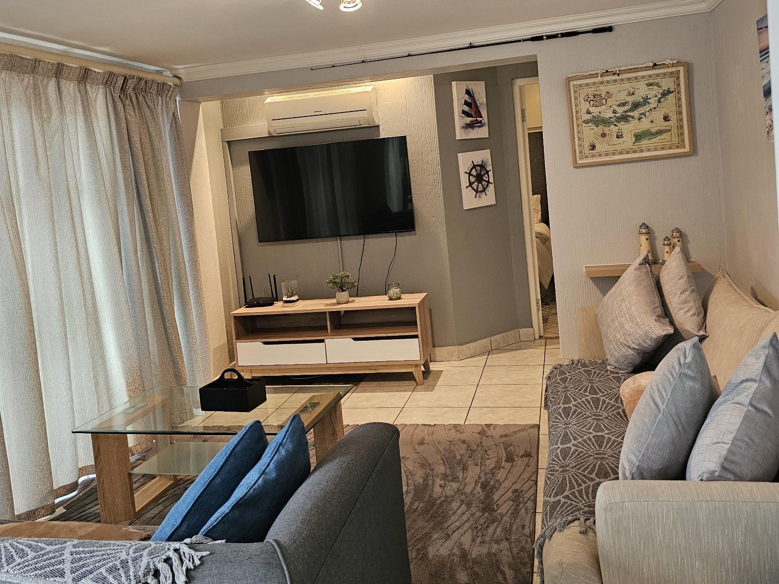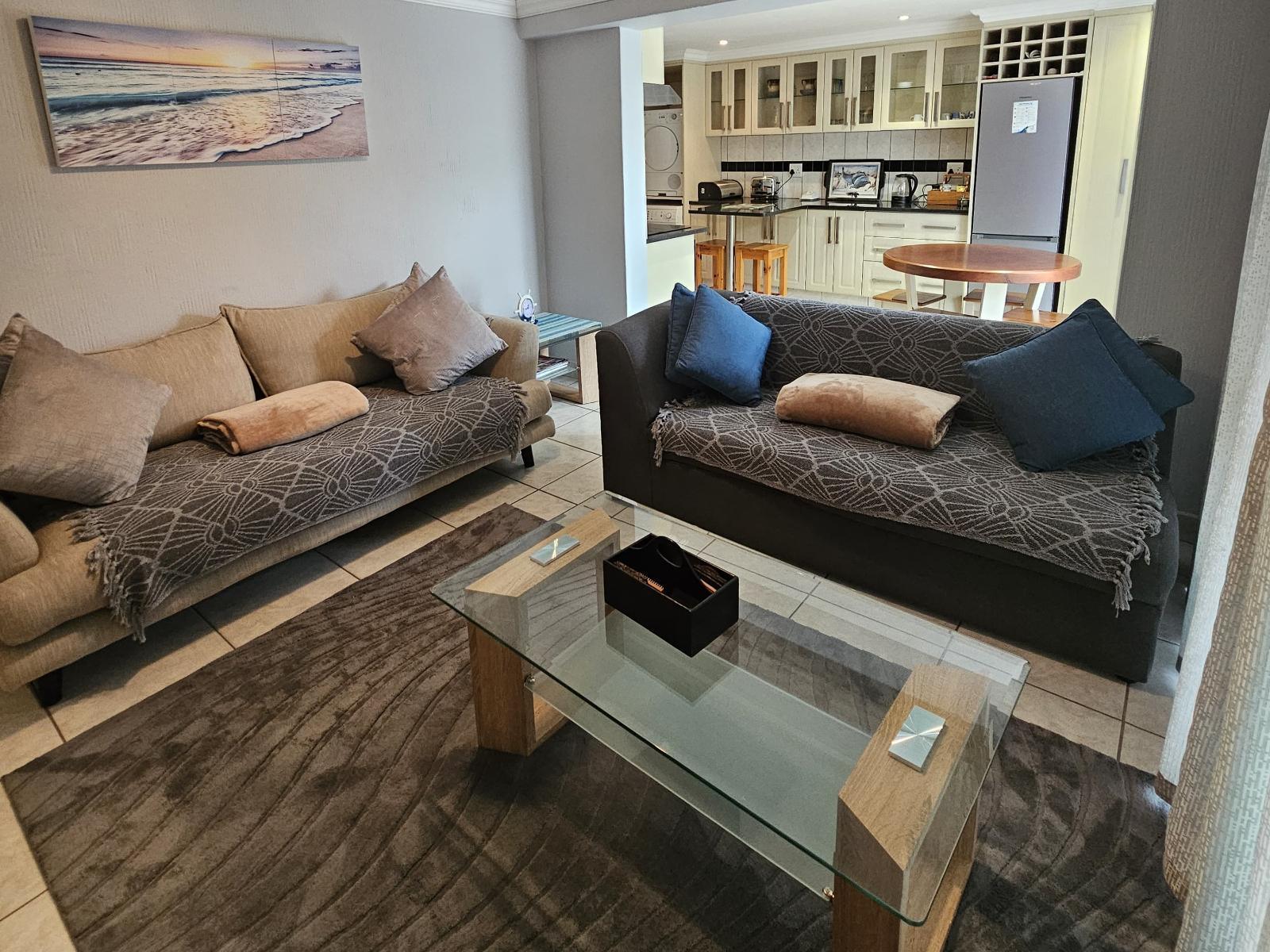 River Apartment in Gated Complex offers ideal accommodation for families or groups of friends in the scenic Keurboomstrand. The apartment is fully equipped for self-catering and includes all the comforts needed for a relaxed and enjoyable home-away-from-home experience. The apartment features two bedrooms, each furnished with a double bed. There are two bathrooms, one with a bath, toilet, and wash basin, and the other with a shower, toilet, and wash basin. An additional separate toilet adds extra convenience for guests. The open-plan kitchen is fully equipped with a stove, microwave, fridge, dishwasher, washing machine, tumble dryer, and coffee and tea-making facilities. A built-in braai adds extra convenience for indoor cooking. The kitchen leads to a dining area and a comfortable living room with couches and a Smart TV with streaming services. Wi-Fi is available throughout the property. The patio features outdoor dining furniture and a Weber braai, perfect for relaxed meals. Guests also have access to the shared swimming pool located across the property.