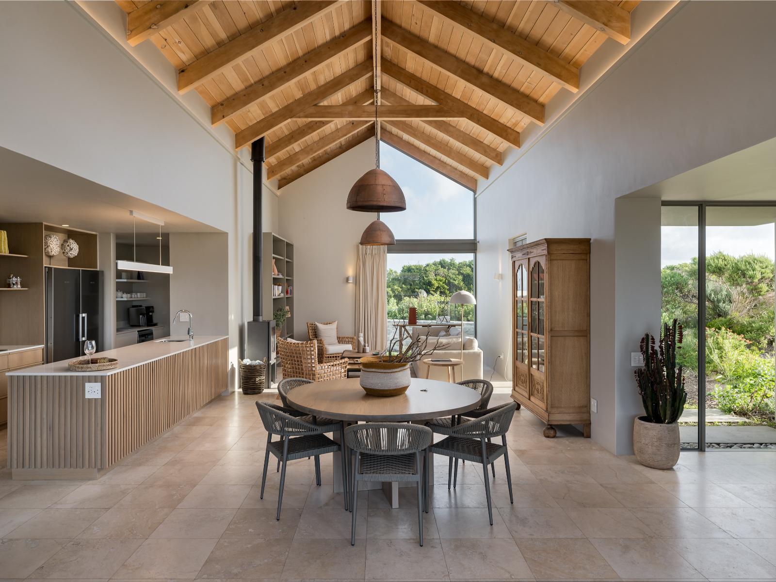 The Black Barn is set in lush Fynbos on an exclusive and private Beach Estate. It is located 400m from a white sandy beach. The Barn offers a completely private stay, in 3 bedrooms and generous living area with a nature filled outside entertainment area.