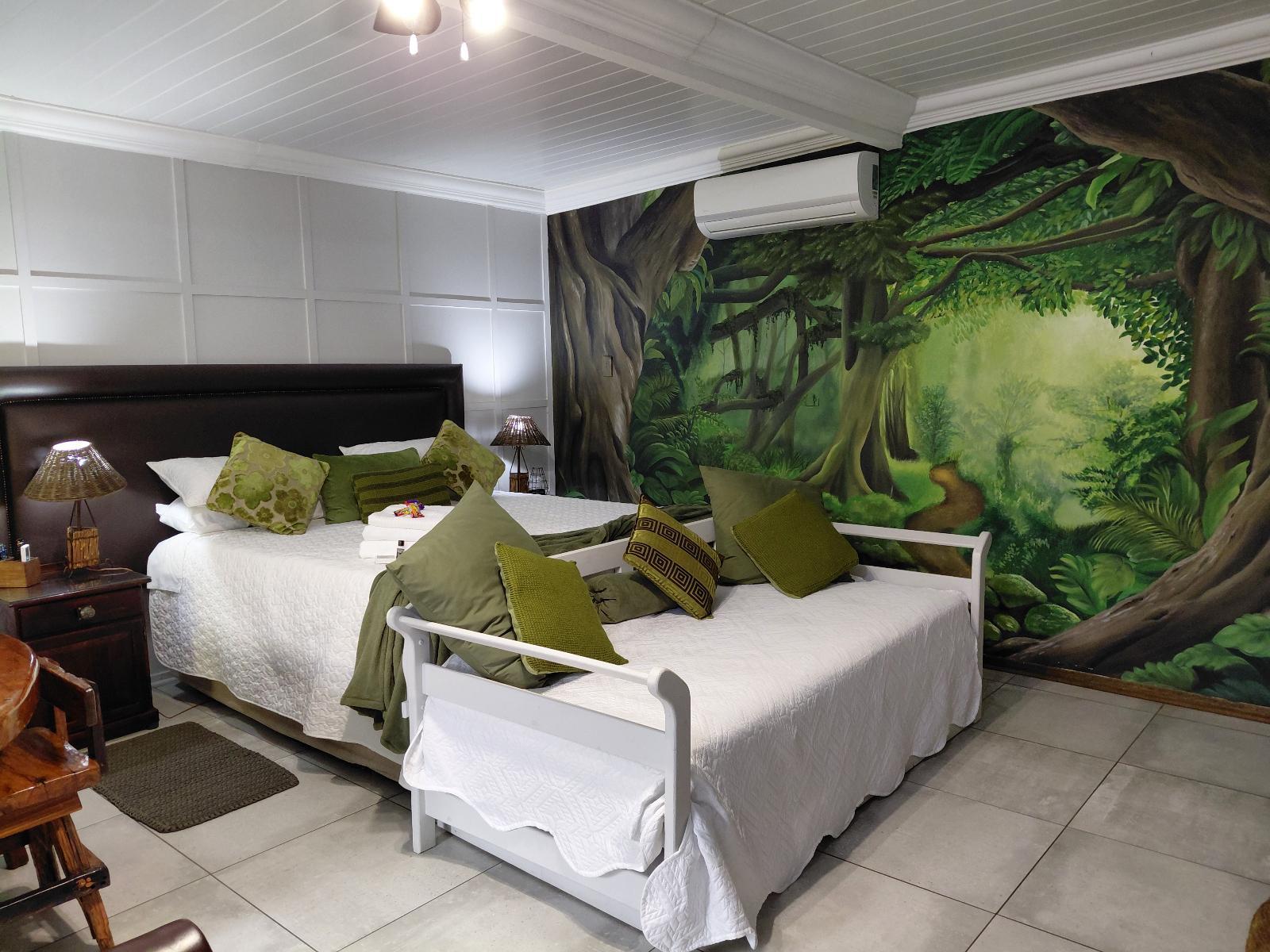 Rustic Forest Guest House offers 3 fully self-catering rooms that can accommodate 2 people each. Forest room is a family room who can accommodate 2 children as well. Each room has an en suite bathroom with only a shower. Free onsite parking. All rooms have full access to DSTV, Wi-Fi. Forest and Rustic rooms have a microwave, 1 plate snappy chef and each an Air fryer, Air con and ceiling fans, bar fridge. Fully equip kitchens The Pond room do not have cooking facilities and the bathroom do not have a shower, only a large bath.