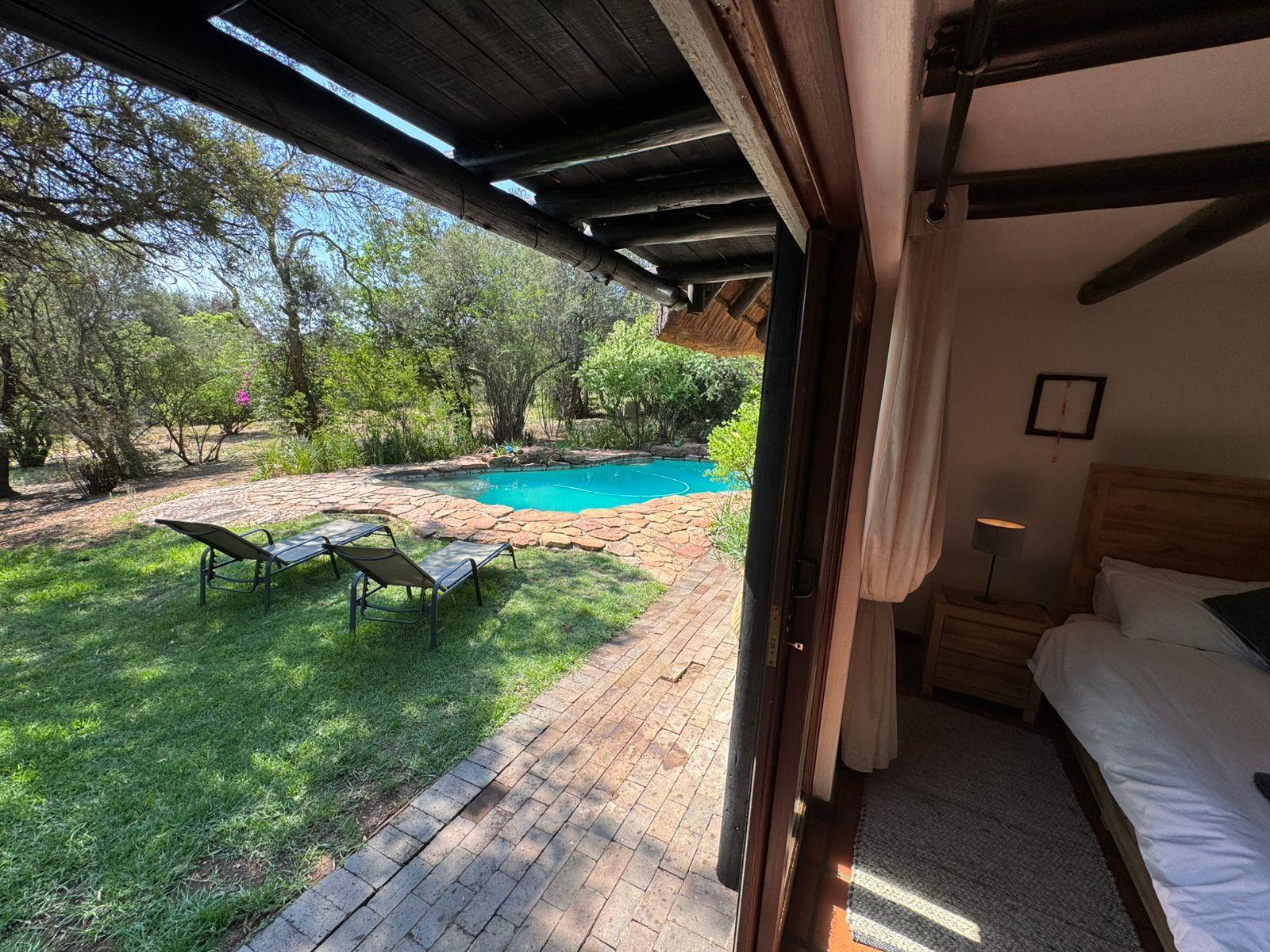 Large private one bedroom cottage overlooking 3 acre garden. Large verandah with braai facilities. Bathroom includes shower and bath. Access to swimming pool