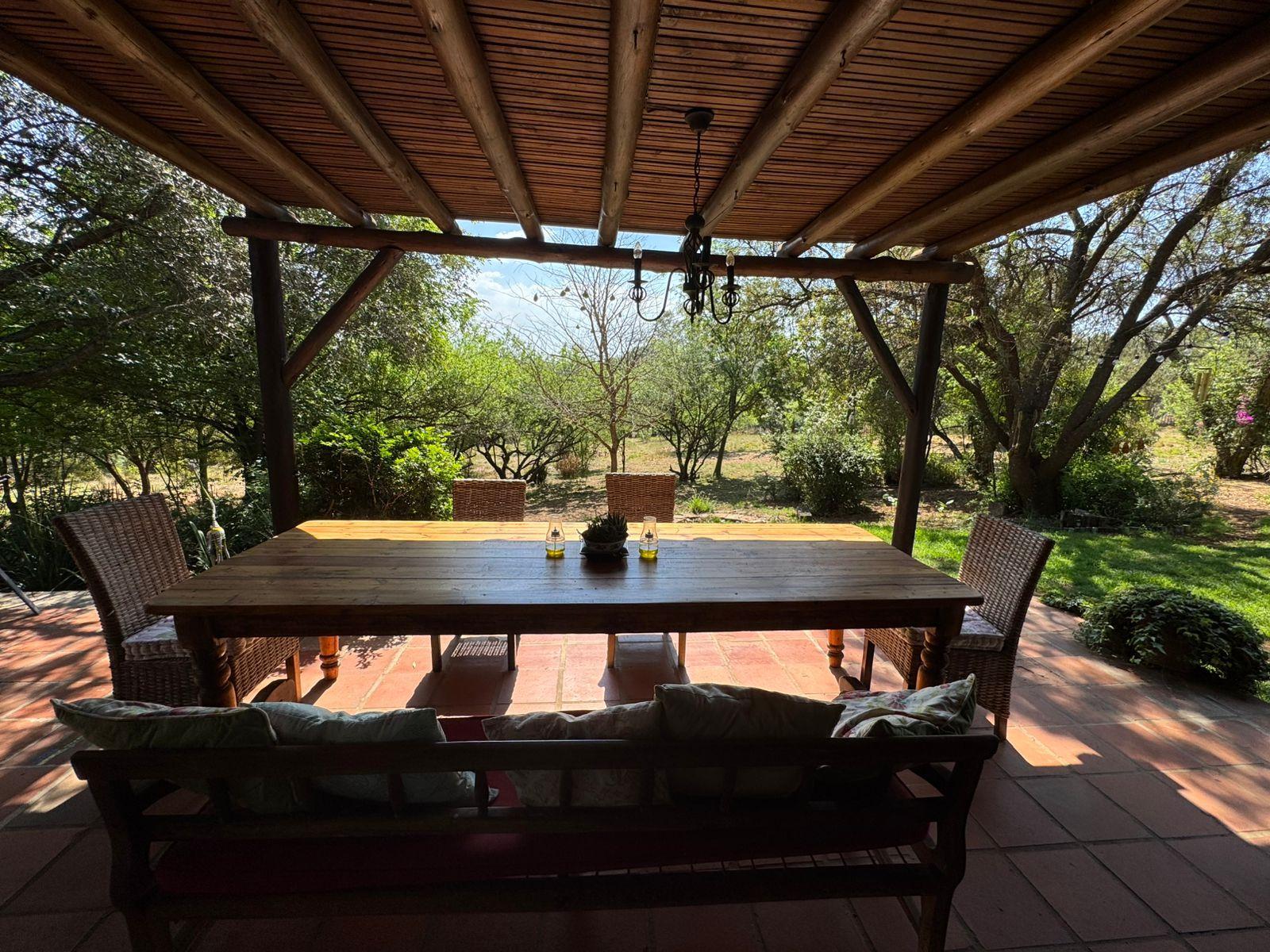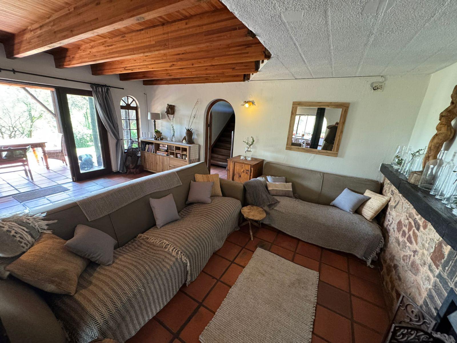 Tucked away along the serene banks of the Jukskei River, Sanctuary of the Heart offers a unique escape that feels worlds away from the bustle of Johannesburg. Nestled within a lush 3-acre garden where nature grows wild and free, this tranquil haven is ideal for those seeking peace, connection, and a touch of rustic charm. This spacious retreat is perfect for families, small groups, or solo travellers. Relax in the cosy lounge complete with a charming fireplace, or enjoy cooking in the fully equipped kitchen. A versatile study/art room offers a perfect creative or work space. Step outside to unwind by the sparkling pool, host memorable gatherings with a Weber braai fueled by firewood, and take in the fresh air from multiple balconies overlooking a large, beautifully maintained garden. Conference venue and Large Artist cottage available.