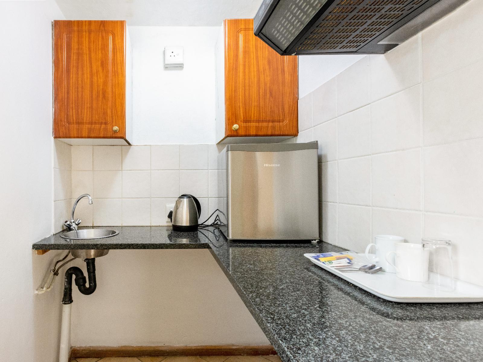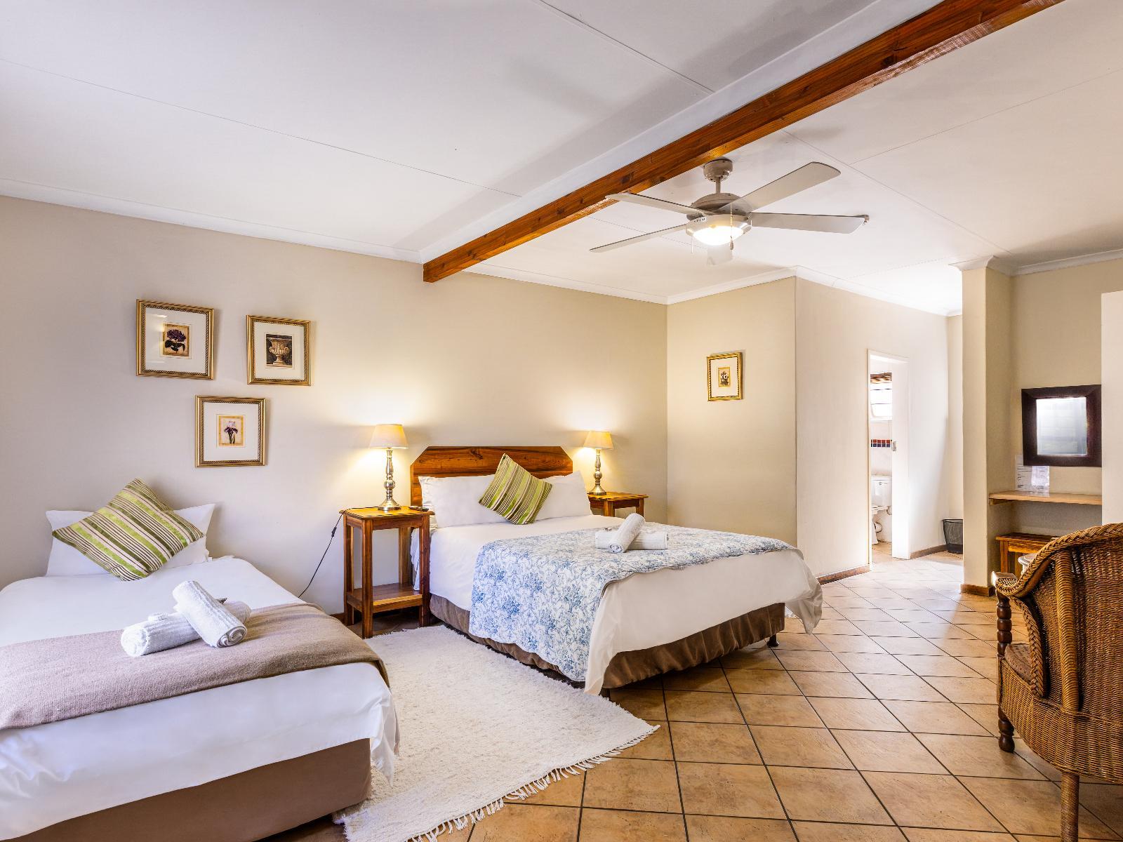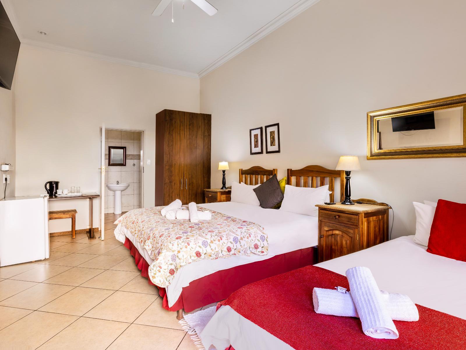 This spacious room is ideal for small families or friends, featuring one double and one single bed, an en-suite bathroom with a shower or both bath and shower, mini-fridge, coffee station, desk, TV with DStv, free Wi-Fi, and daily breakfast.