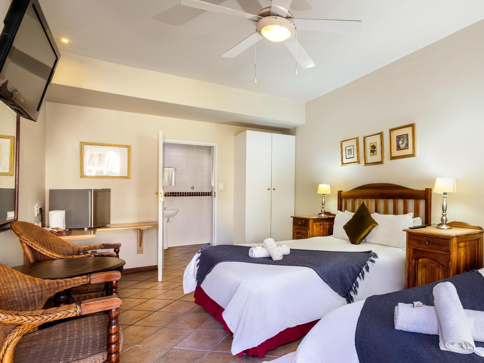 Designed for comfort and calm, this room features a double bed and an en-suite with a shower or both bath and shower. Amenities include a coffee station, bar fridge, desk, free Wi-Fi, TV with DSTV, plus a hearty breakfast.