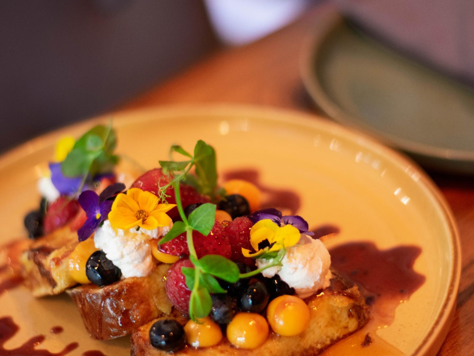 Modern suite with extra-long king bed, percale linen, en-suite bath and shower. Features include Nespresso machine, fridge freezer, 43” Smart TV with Netflix, free Wi-Fi, indoor fireplace, and laptop safe. Enjoy your own private patio.