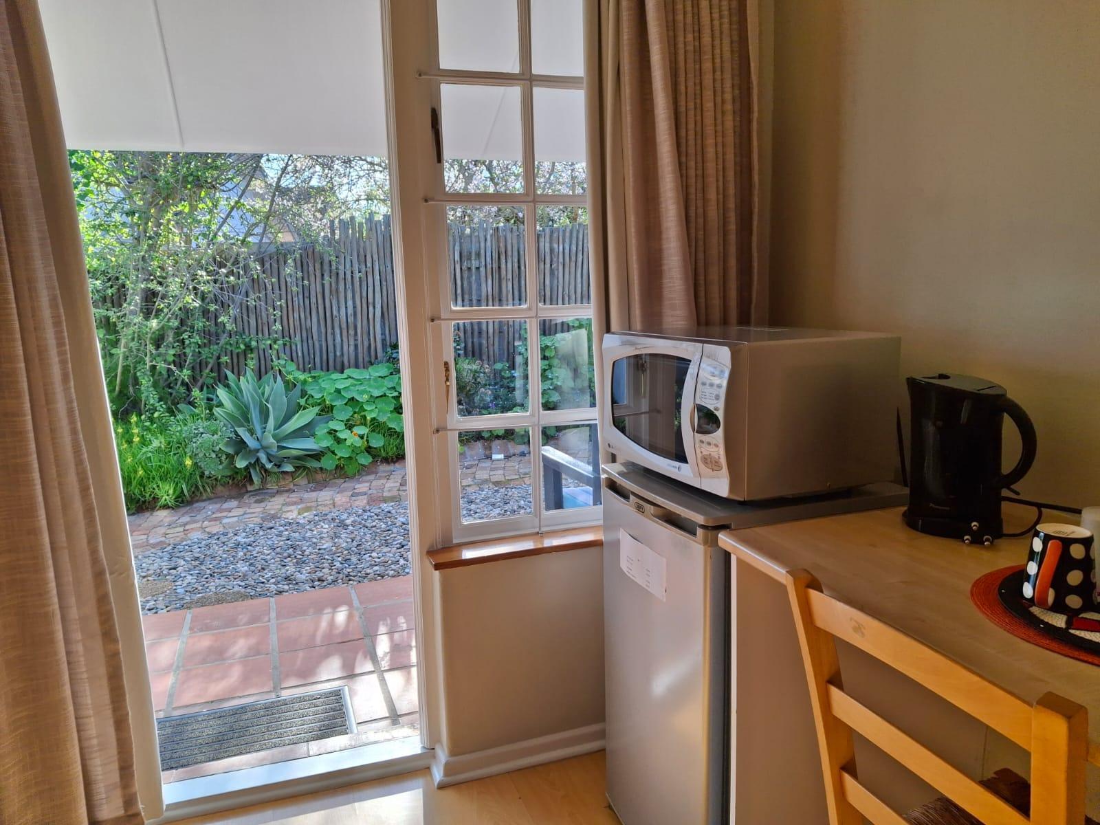 This room is comfortable with a TV, fridge, microwave and coffee/tea tray. Internet accessible from room (WiFi). En suite bathroom is very comfortable and you have a view over a little private garden.