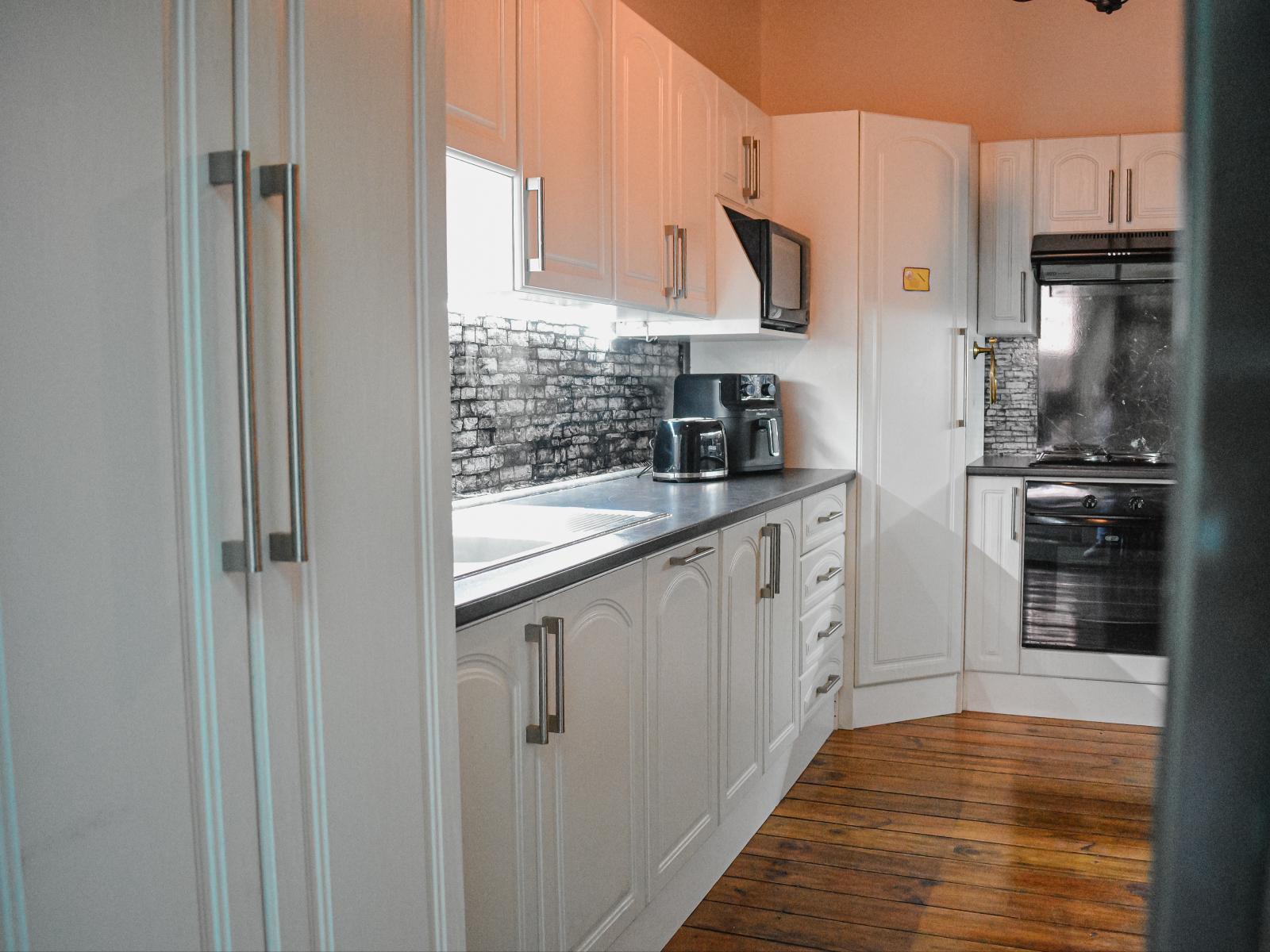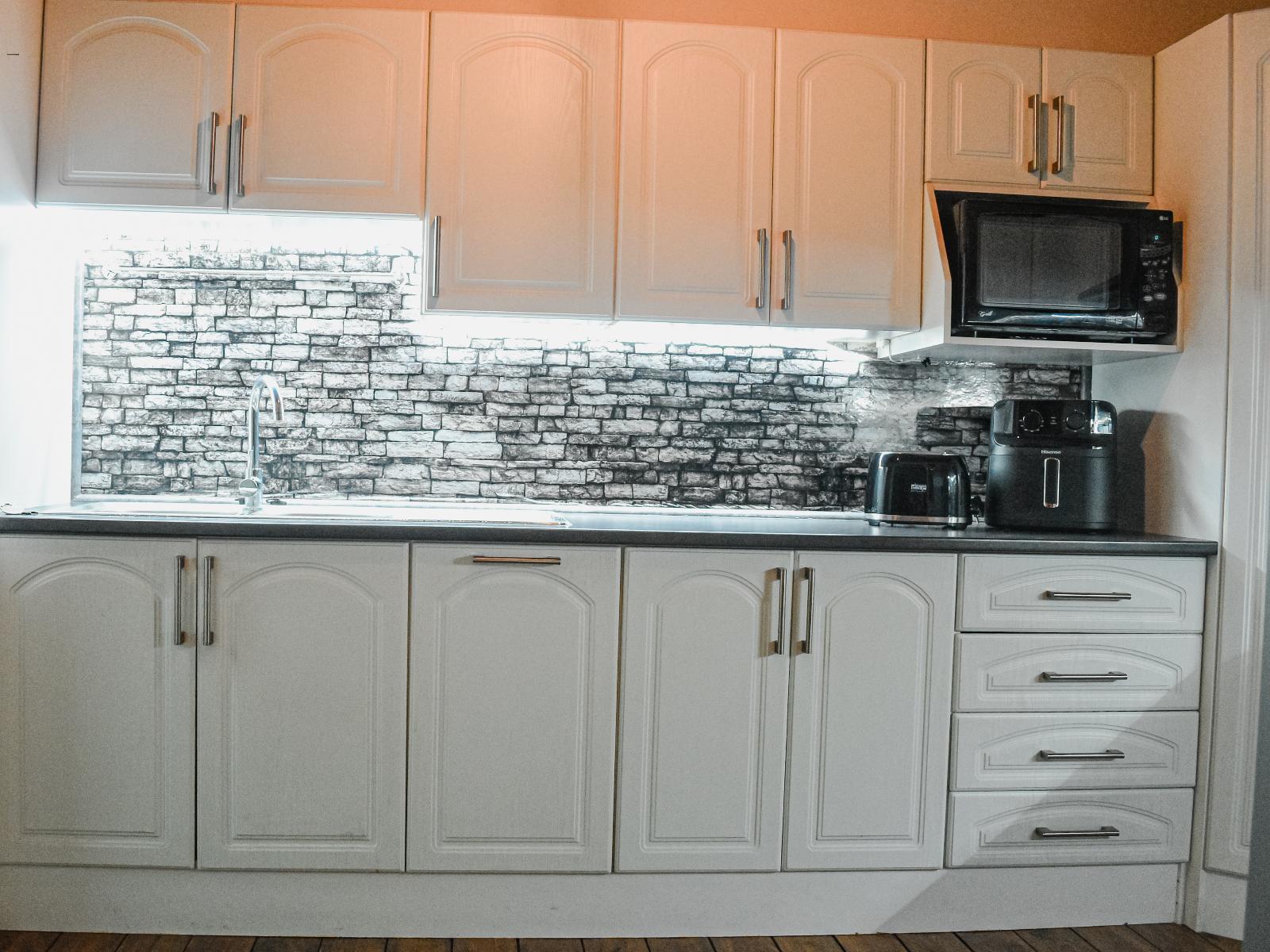 A luxurious unit featuring a queen bed, a private, sleek en-suite bathroom with a refreshing shower. Enjoy the convenience of a full, modern kitchen, complete with a microwave, spacious fridge, and appliances for fresh coffee and tea.