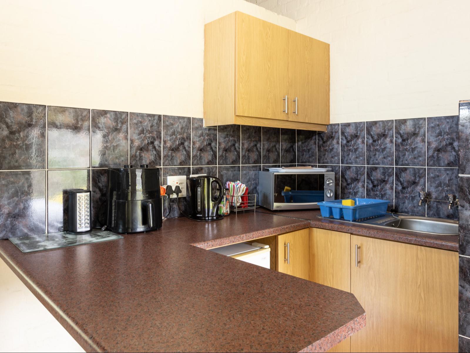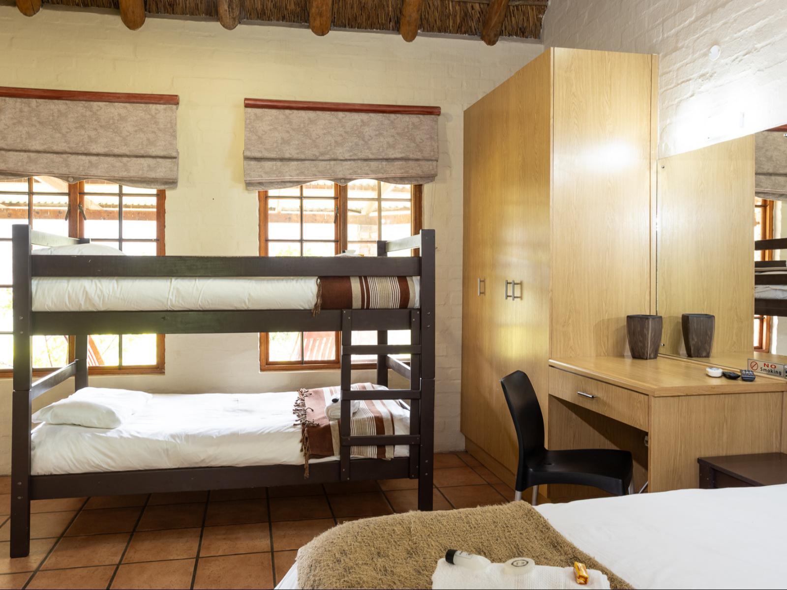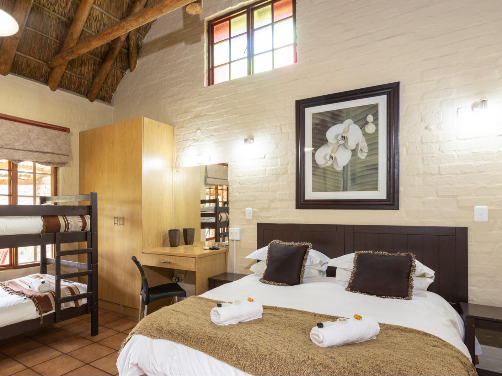 This unit has a queen-size bed and a bunk bed with an en-suite shower bathroom. This room offers a TV with DStv, free Wi-Fi, air-conditioning, a hairdryer, and a kitchenette area with a microwave, a toaster, and tea and coffee facilities.