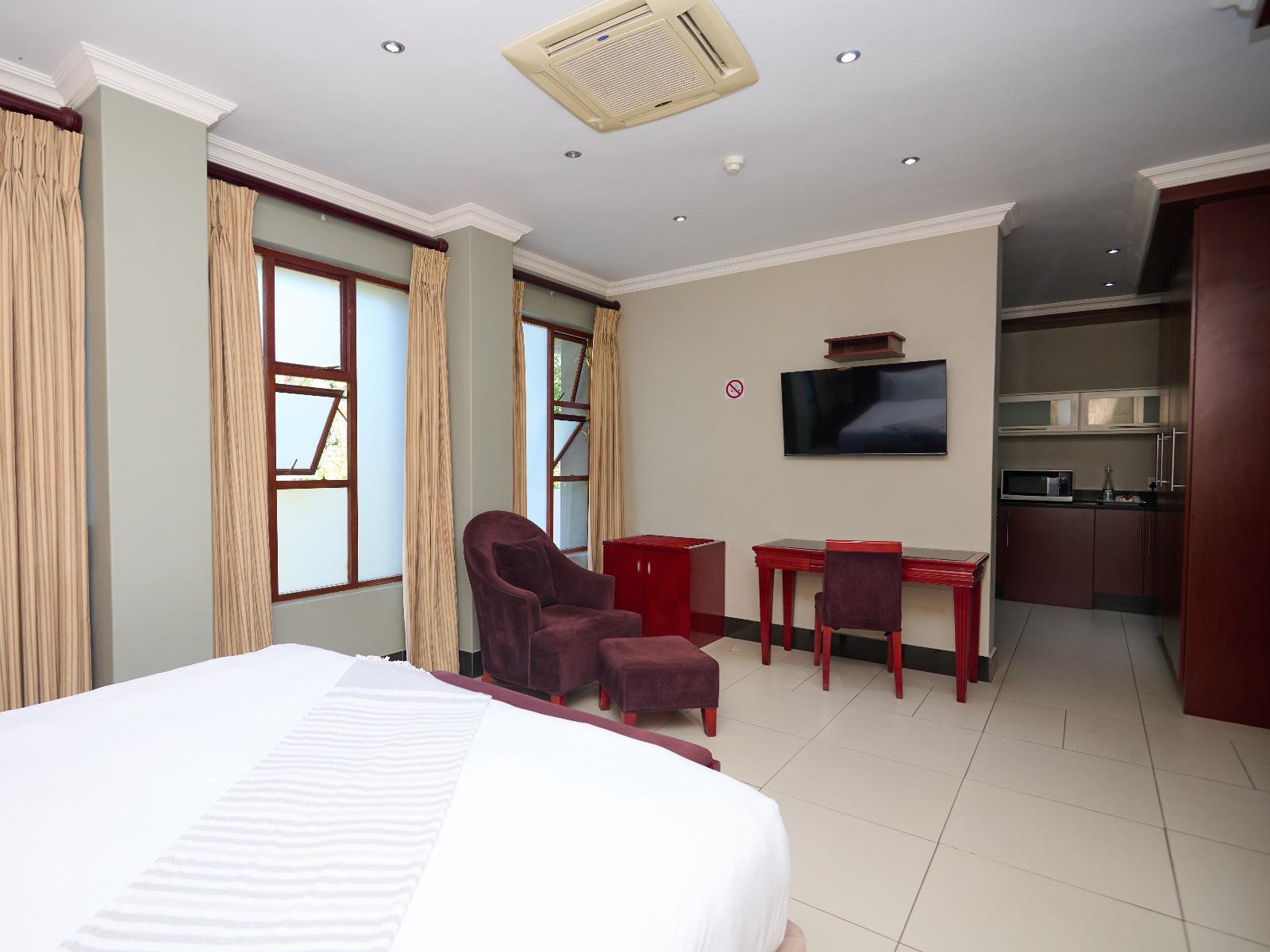 Each spacious suite has a king-size bed and an en-suite bathroom. Each unit features a kitchenette with heat-and-eat appliances, air-conditioning, free Wi-Fi access, a TV for media entertainment and a lounge area.