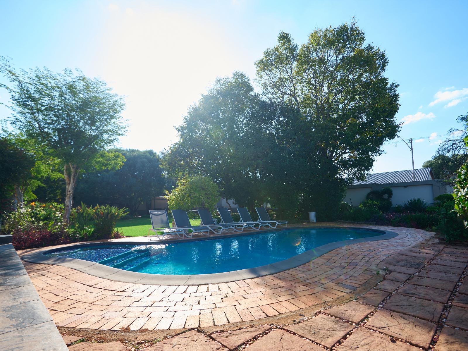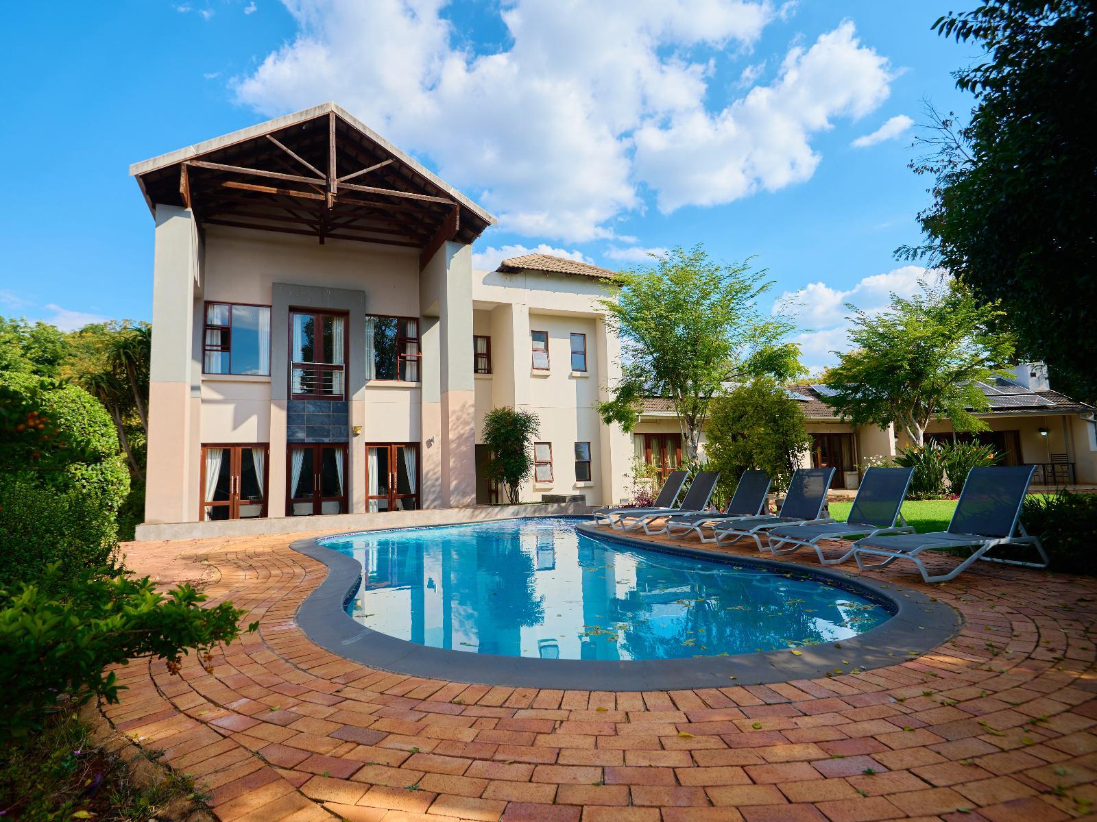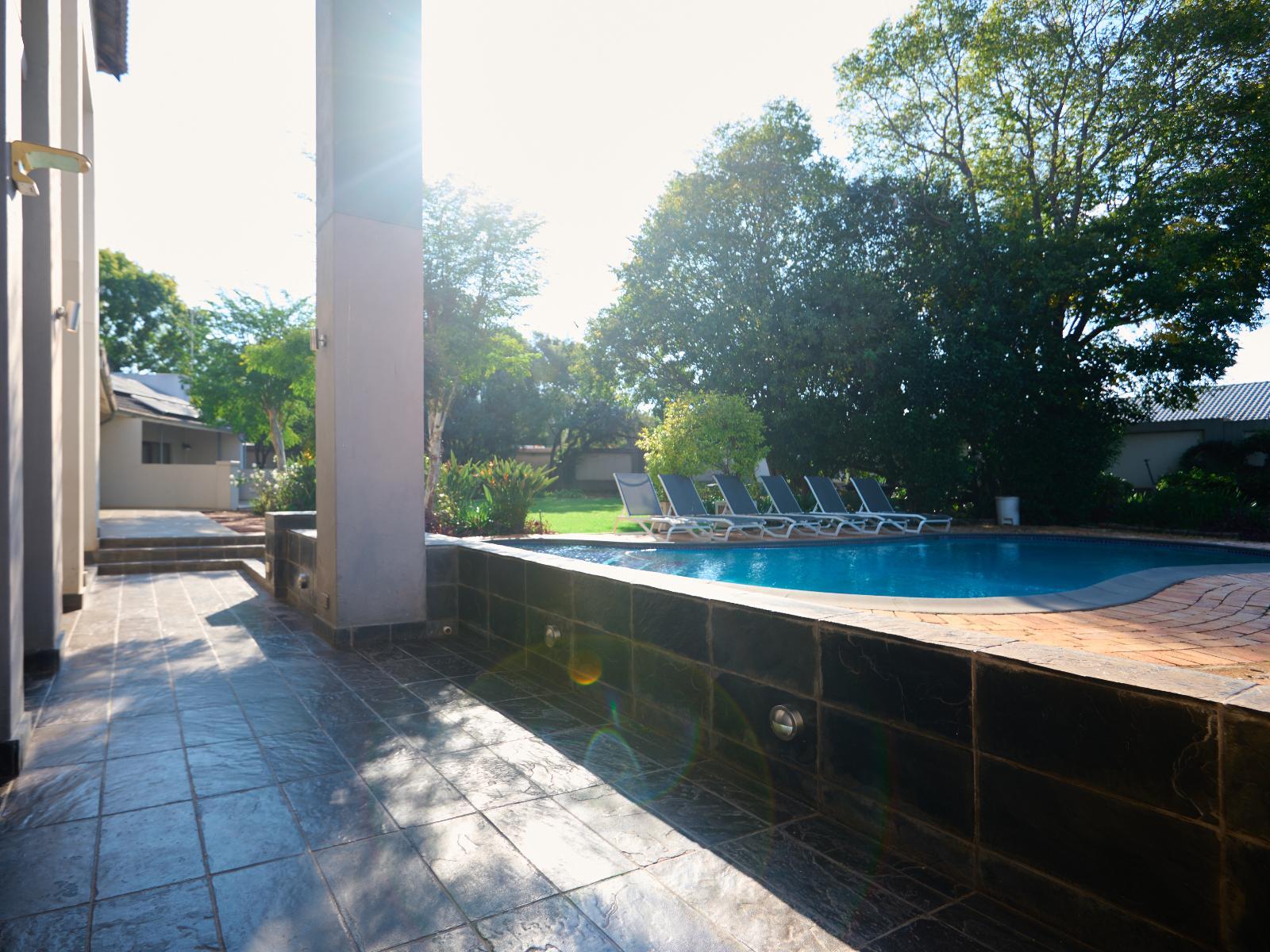 Tamboti Lodge is a luxury and tranquil guest house situated in Val de Grace, Pretoria. The property offers luxury accommodation and is ideal for a leisure or business stay, 12 km from Pretoria CBD and 48 km from O.R. Tambo International Airport. Accommodation comprises 12 individually decorated suites. Each unit is furnished with a king-size bed and features an en-suite bathroom with a shower and bath. Each unit contains air-conditioning, a bar fridge, a microwave, a desk, a TV, free Wi-Fi, and access to a balcony or a patio with garden views. Delicious meals can be arranged in advance. Tamboti Lodge boasts an inviting outdoor swimming pool, a conference room to hire, concierge services, and free secure parking. There are several upmarket restaurants, historic sites, a gym, and shopping centres, as well as doctors and hospitals nearby.
