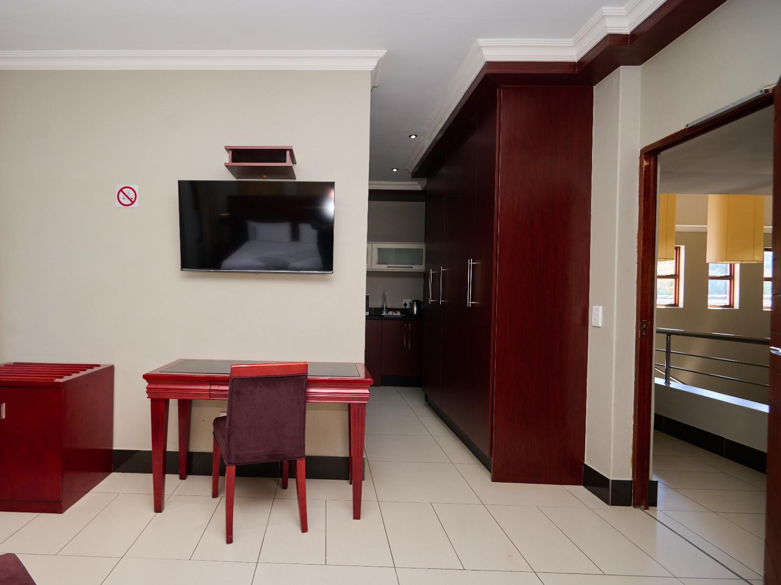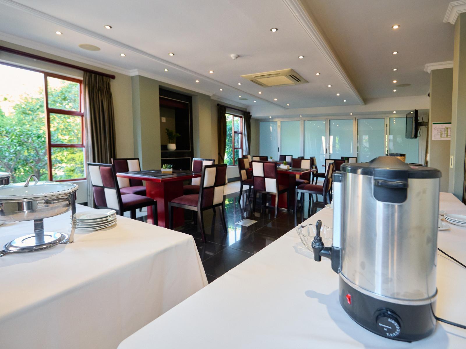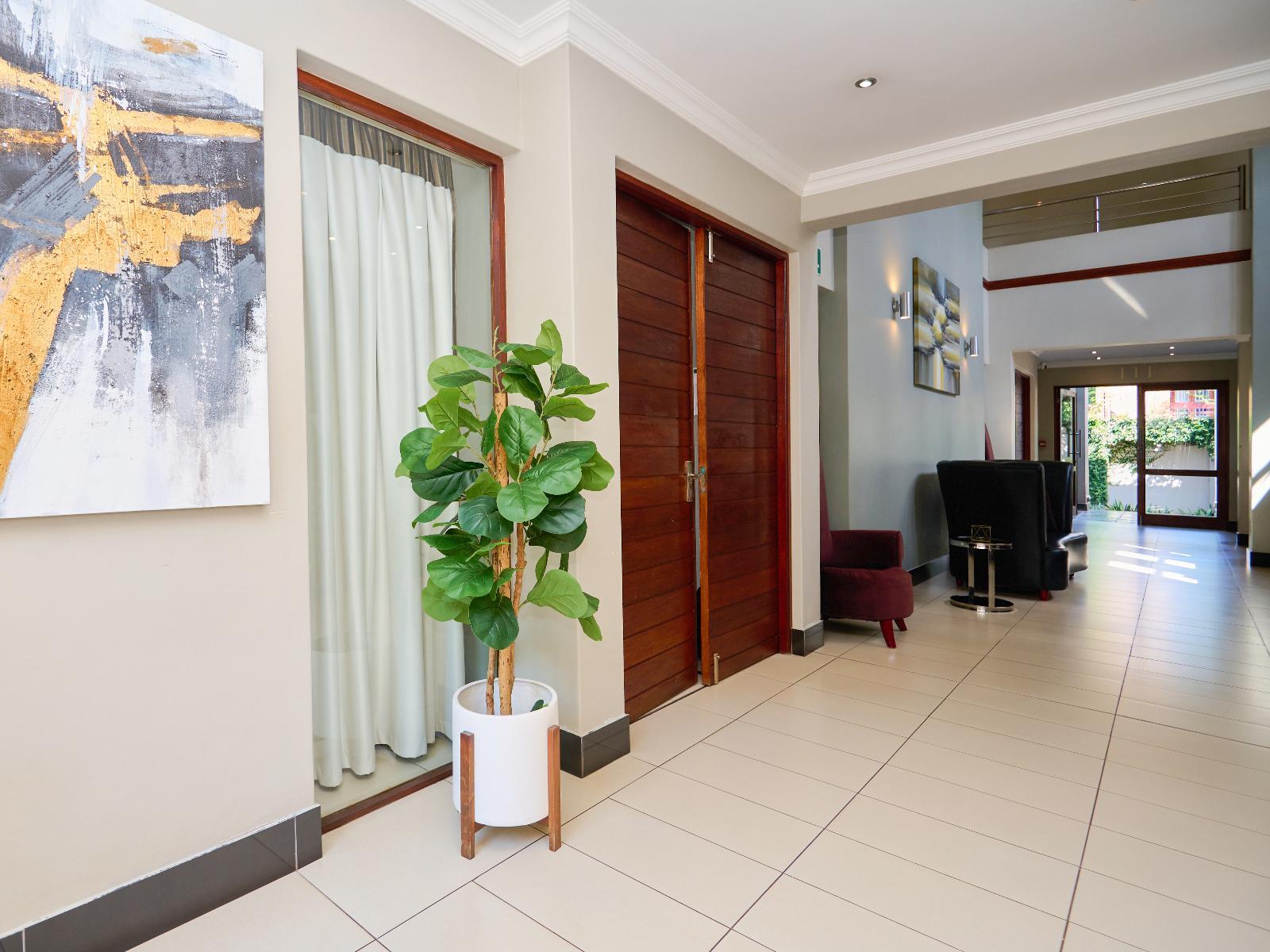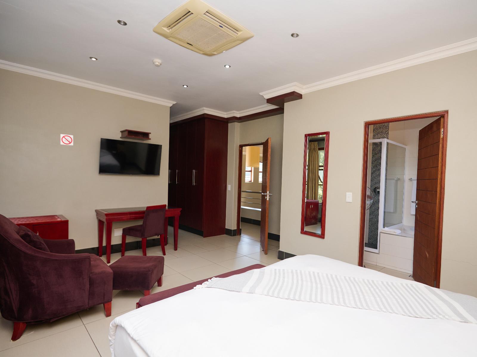 Tamboti Lodge is a luxury and tranquil guest house situated in Val de Grace, Pretoria. The property offers luxury accommodation and is ideal for a leisure or business stay, 12 km from Pretoria CBD and 48 km from O.R. Tambo International Airport. Accommodation comprises 12 individually decorated suites. Each unit is furnished with a king-size bed and features an en-suite bathroom with a shower and bath. Each unit contains air-conditioning, a bar fridge, a microwave, a desk, a TV, free Wi-Fi, and access to a balcony or a patio with garden views. Delicious meals can be arranged in advance. Tamboti Lodge boasts an inviting outdoor swimming pool, a conference room to hire, concierge services, and free secure parking. There are several upmarket restaurants, historic sites, a gym, and shopping centres, as well as doctors and hospitals nearby.