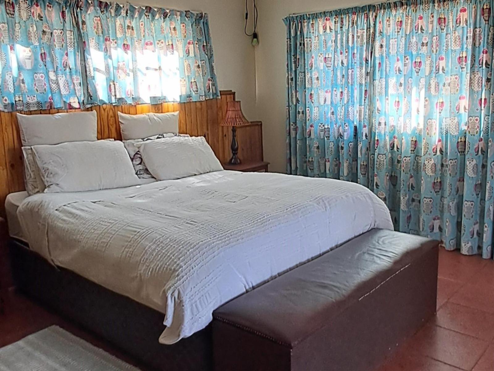 The covered veranda allows for a lovely view over the valley. Caters for 2 adults and 3 children or 5 adults in 2 separate bedrooms. Main with king size and other with 3x 3/4 beds. Bathroom with shower. Living room with fireplace and DSTV.