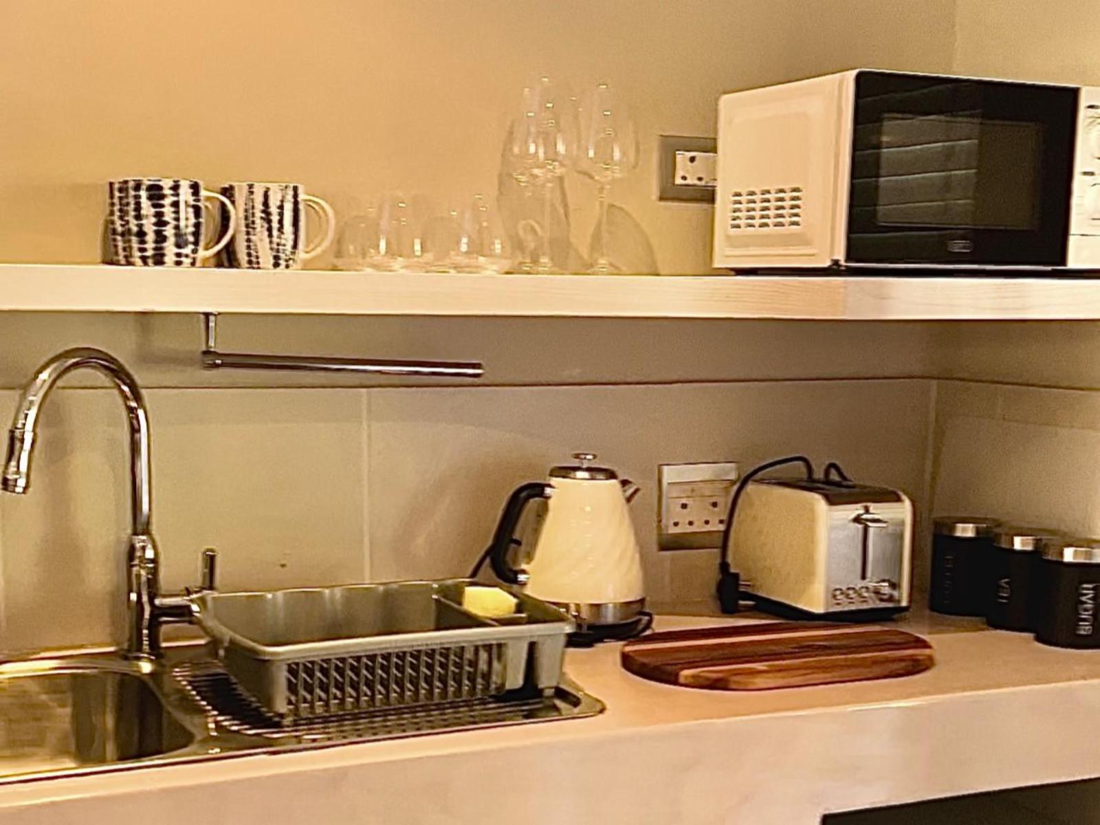 This unit is furnished with a king-size bed and an en-suite bathroom with a shower. This unit features a kitchenette with basic appliances to cook meals. There is a sitting area and free Wi-Fi access.