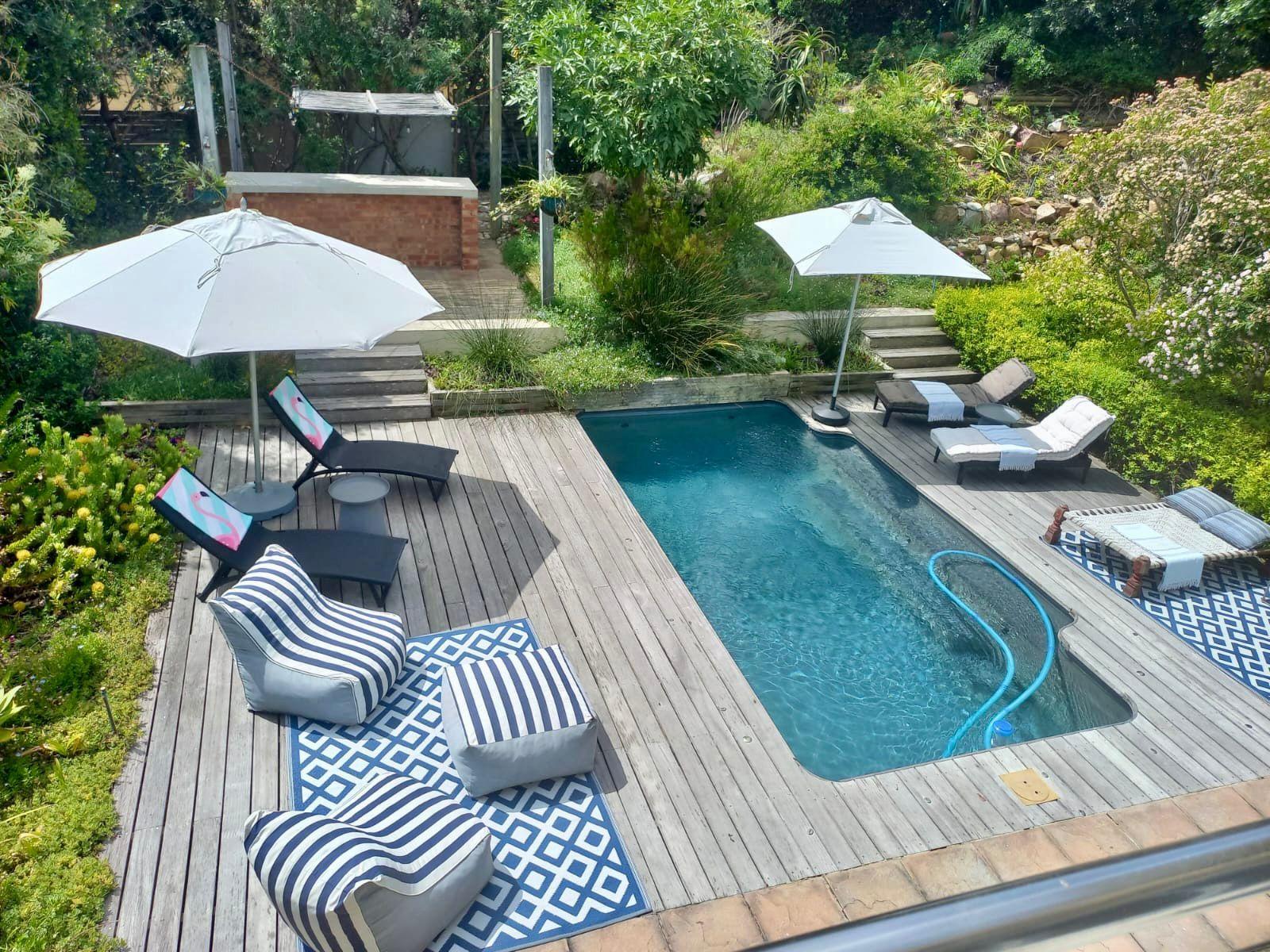 The Blu Plettenberg Bay offers self-catering accommodation located on the host's property. The property is within close proximity to Robberg beach, in Plettenberg Bay. The Blu comprises 3 individually decorated, self-catering units. Each unit features a shower en-suite bathroom. Each unit offers a kitchenette with basic appliances for guests to prepare and cook simple meals. These self-contained units are separate from the main house. The Blu boasts a lovely beautiful garden, a tanning deck with a swimming pool and bar area, large spacious outdoor patios, a braai area, as well as outdoor and indoor entertainment areas. There are domestic quarters off the laundry area. Please note: Only guests are allowed on the premises.