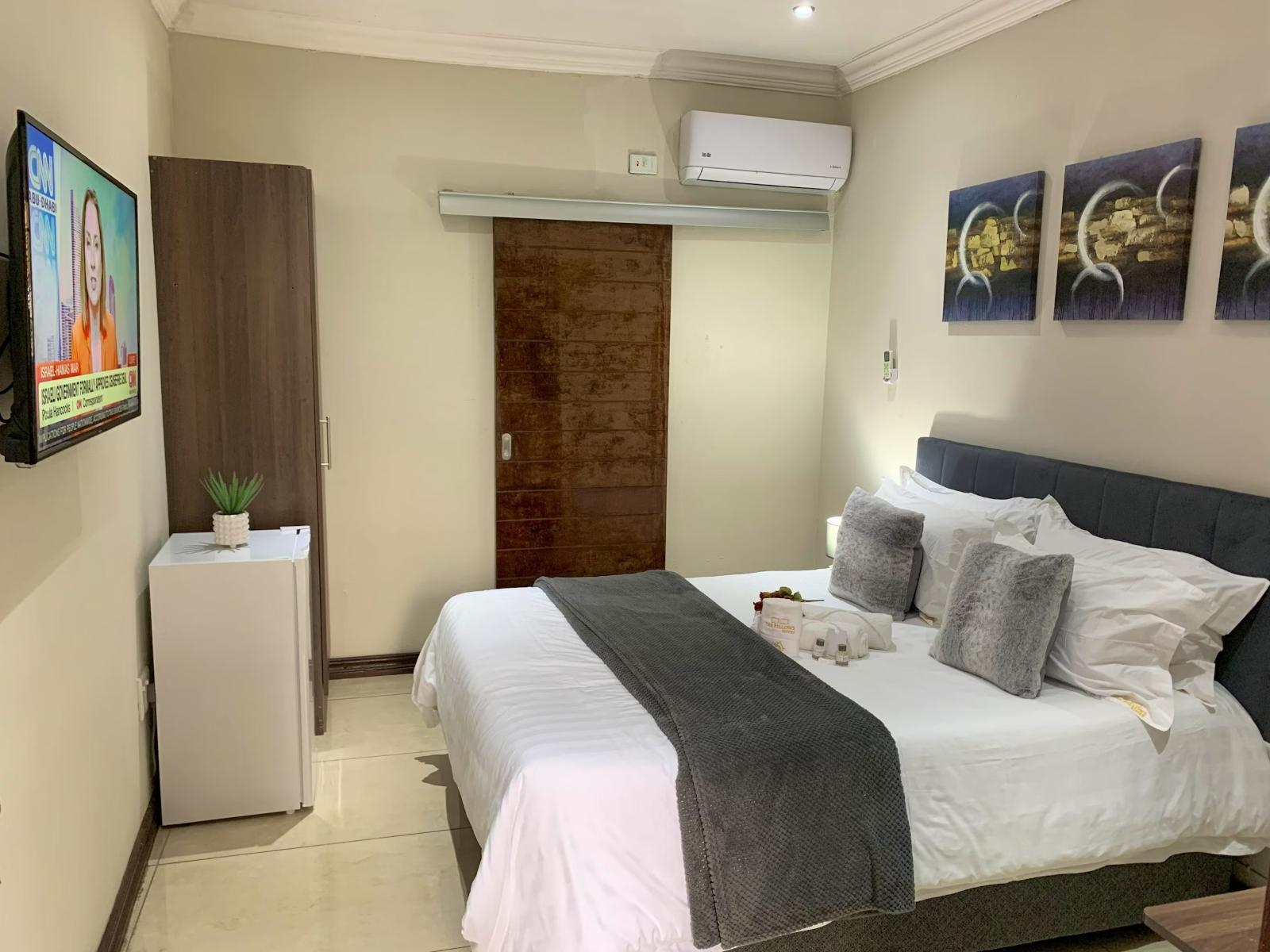 The Pillows Suites Villa is a guest house nestled in the tranquil suburb of Waterkloof Ridge, Pretoria, offering the perfect retreat for both business and leisure travellers. Its prime location provides easy access to a variety of local amenities, including shops and restaurants, ensuring a seamless and enjoyable visit. Guests can choose from a selection of beautifully appointed accommodations, including a Standard Double Room, a Deluxe Double Room, and a Premium Room. Each room is designed to provide a comfortable overnight stay for up to two guests, featuring a cosy bed with high-quality linen and towels, a private en-suite bathroom (either shower-only or bath-only), a smart TV with Openview decoder, and tea- and coffee-making facilities. Business visitors can make use of a desk and the complimentary Wi-Fi, while guests will enjoy access to a private balcony in the Premium Room. Beyond the private suites, guests are invited to enjoy the villa's impressive communal facilities. The property boasts a fully equipped communal kitchen, a spacious dining area, and a comfortable living room with a fireplace, as well as an outside firepit. For relaxation and recreation, there's a sparkling swimming pool, braai facilities perfect for a classic South African barbecue, and a tennis court for a friendly match.