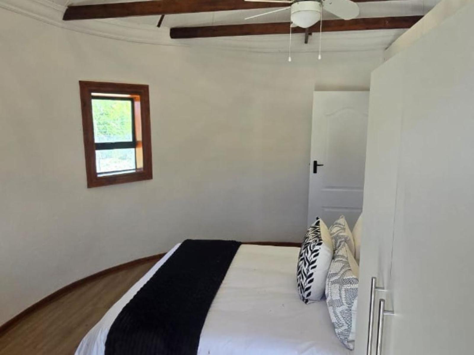 This cosy rondavel offers a double bed and a private en-suite bathroom with a shower. You'll also find a compact kitchenette, featuring a two-plate stove, a bar fridge, and tea and coffee-making facilities. A ceiling fan provides comfort on warmer days.