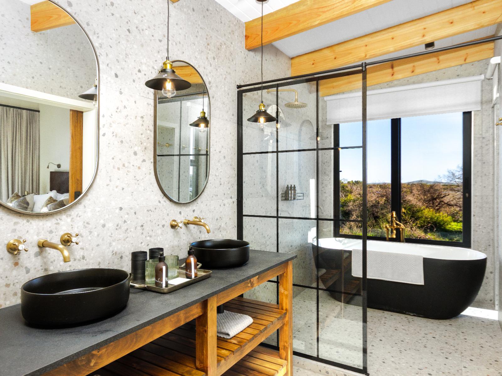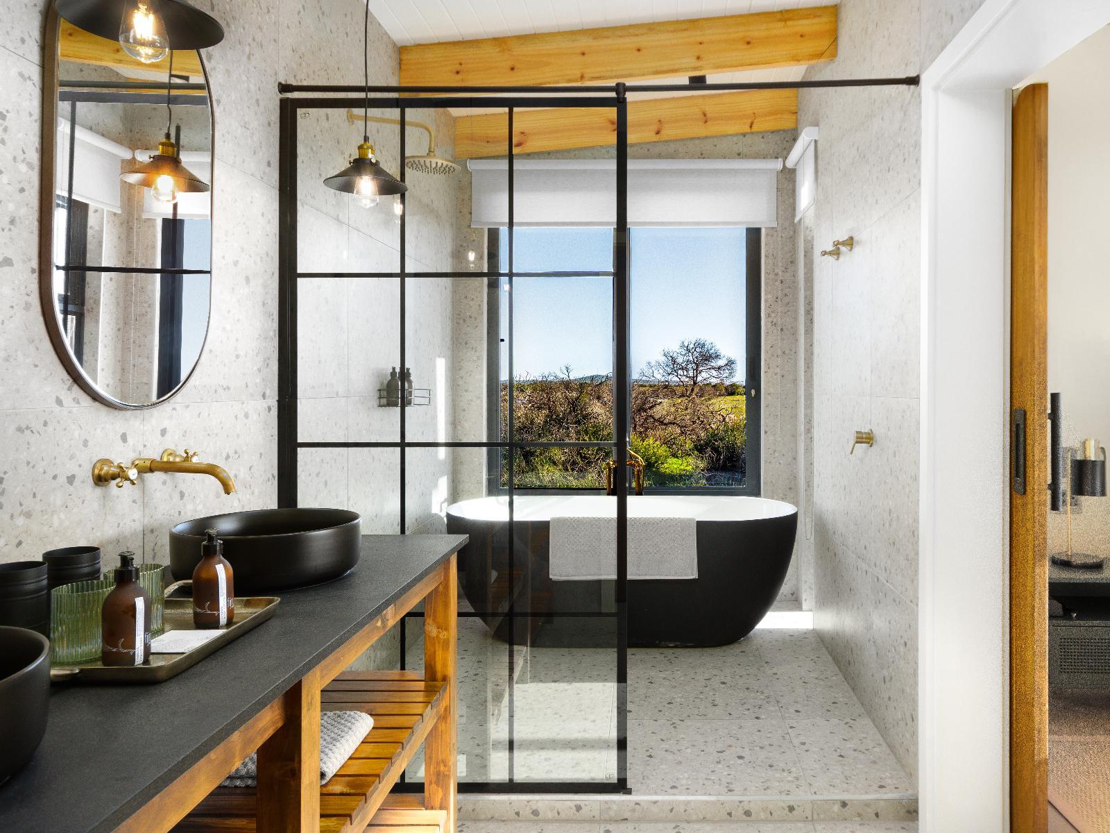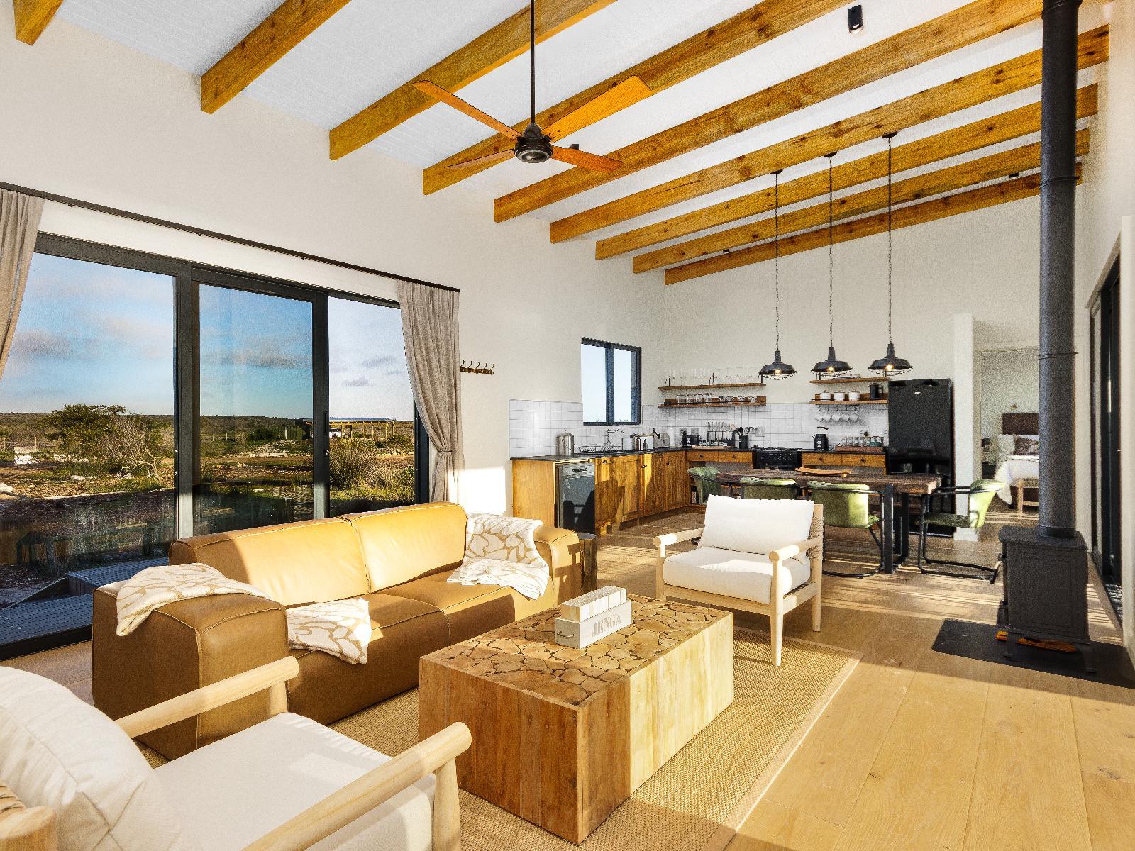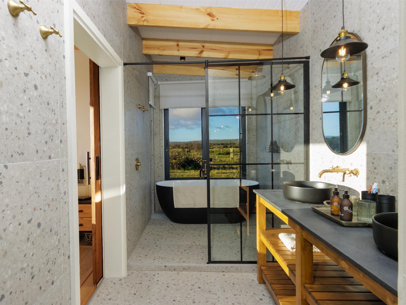 Nestled on the captivating West Coast, The Salt Mine in Yzerfontein offers an idyllic escape where modern design meets untamed natural beauty. This spacious two-bedroom sanctuary is designed for ultimate comfort and connection, boasting two rooms with a king bed and two twin beds (that can be converted into a king bed if you require), adding a fold-away bed for a 5th person under the age of 12 years, ensuring flexible arrangements for all guests. Both bedrooms feature exquisite en-suite bathrooms, reflecting a clean aesthetic with every convenience. Culinary enthusiasts will delight in the full kitchen, equipped with a four-plate gas stove and oven, and a complete array of cookware, inviting you to create delicious meals at your leisure. The open-plan living and dining area, warmed by a charming fireplace, provides a cosy hub for relaxation and shared moments. Step onto the picturesque deck, where a built-in braai awaits for delightful outdoor cooking experiences. As evening descends, and the symphony of nature can be heard, gather around the inviting firepit – not just a place for warmth, but a magical spot for storytelling, stargazing, and forging unforgettable memories under the vast African sky. For a truly unique experience, immerse yourself in one of the outdoor coal-burning hot tubs, where the soothing warmth and the tranquil surroundings combine to create an unparalleled sense of peace and rejuvenation. While Wi-Fi is readily available to keep you connected, you won't find any televisions here, as The Salt Mine encourages you to fully embrace the breathtaking natural splendour that envelops the property. For those seeking adventure, exhilarating horse-riding excursions and captivating game drives can be easily booked, offering a chance to explore the diverse landscapes and wildlife found on West Coast Private Game Reserve. Beyond the immediate tranquillity of The Salt Mine, a wealth of attractions beckon. Discover the charming coastal town of Yzerfontein with its iconic 16 Mile Beach, explore the vibrant birdlife of the West Coast National Park, or venture further to sample the exquisite wines of the Swartland region. The Salt Mine provides the perfect base for an unforgettable West Coast getaway, promising a harmonious blend of comfort, adventure, and profound natural beauty.
