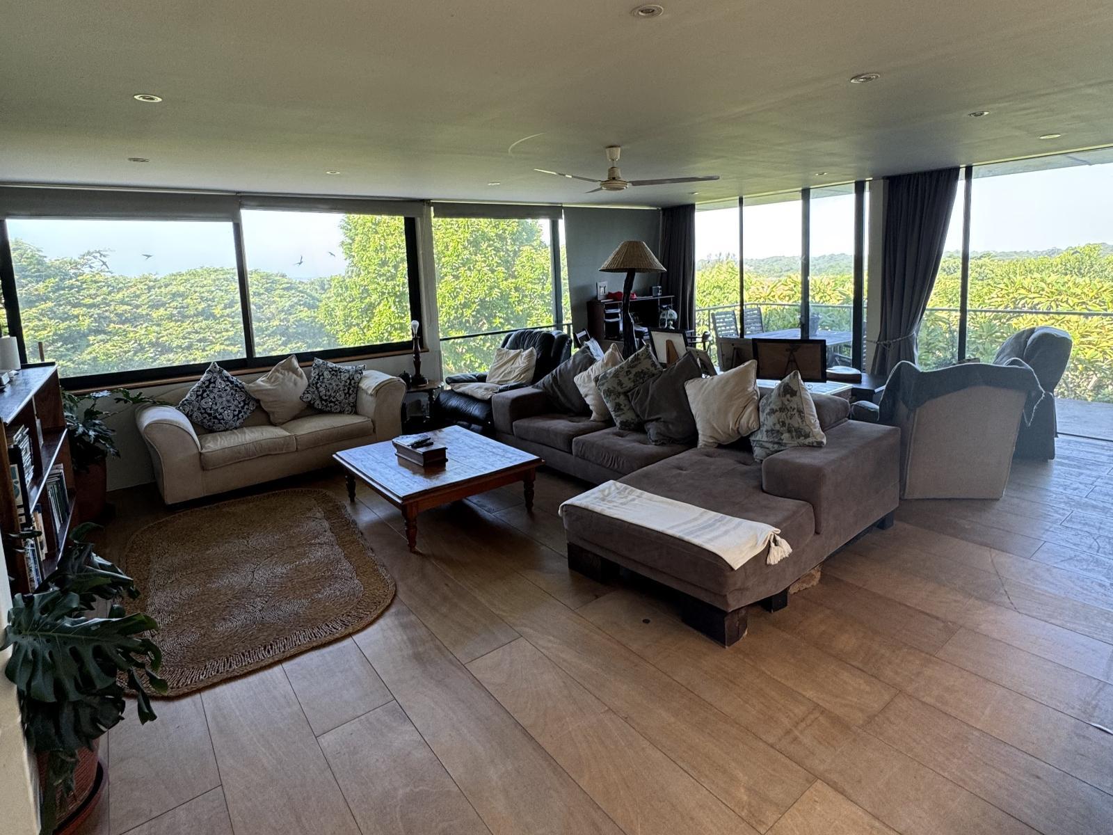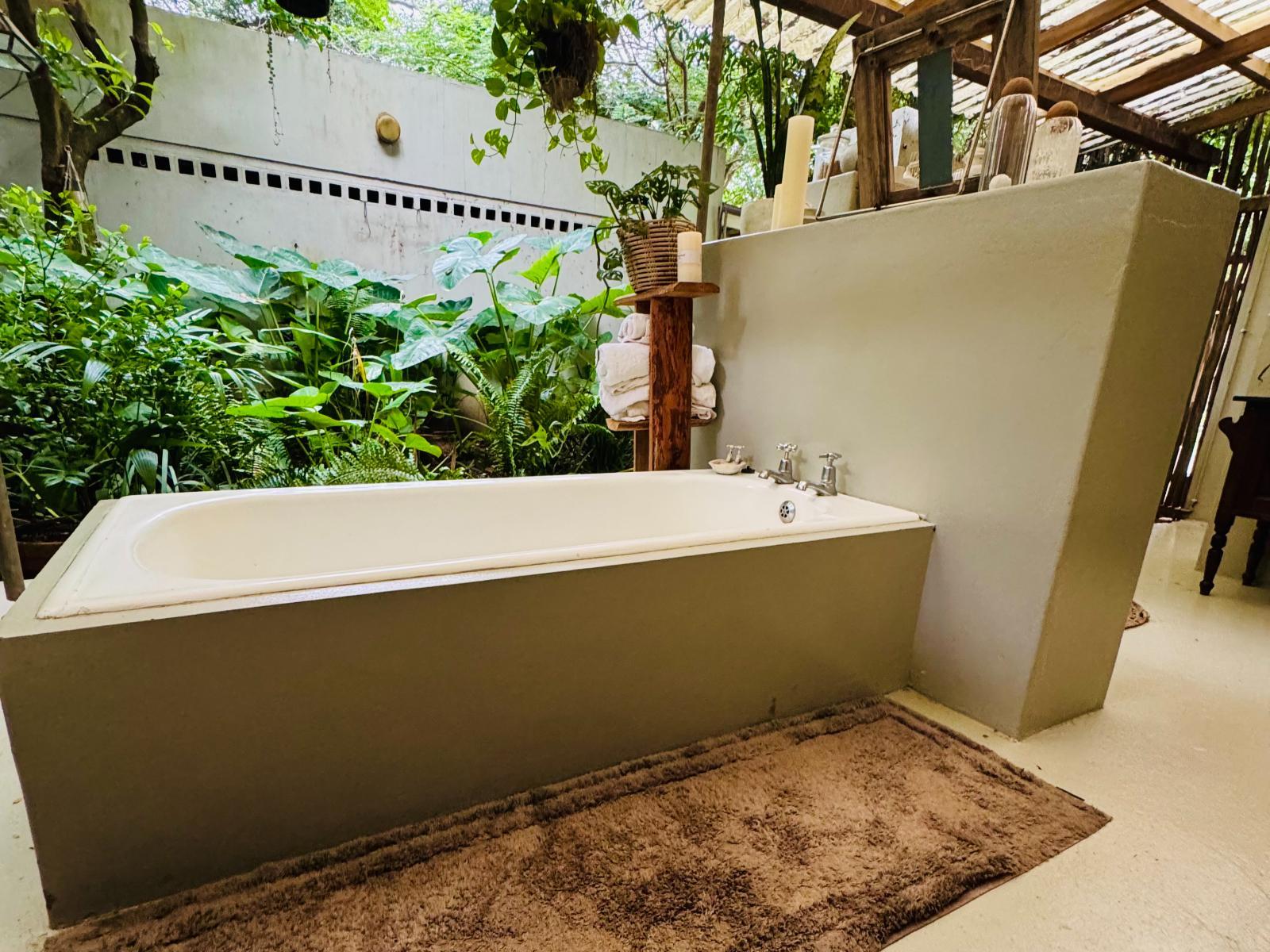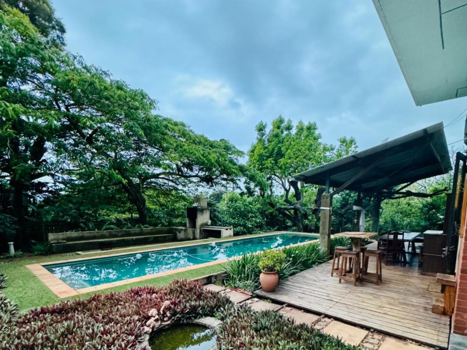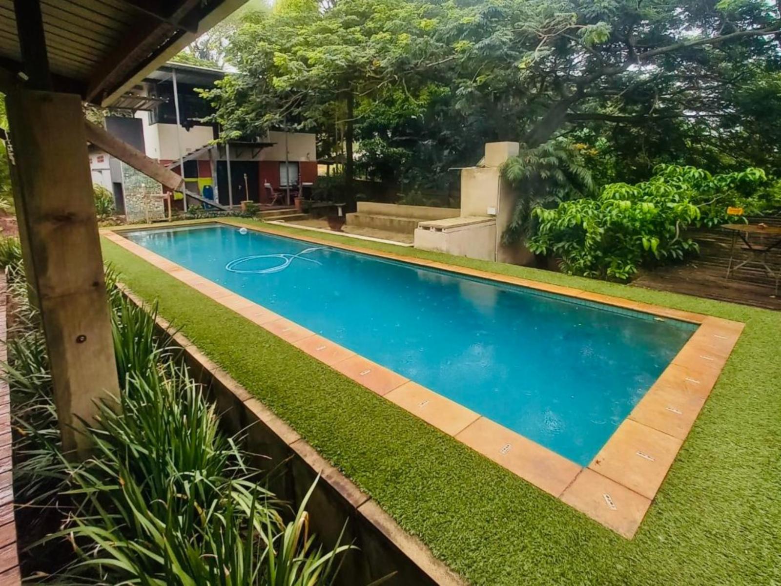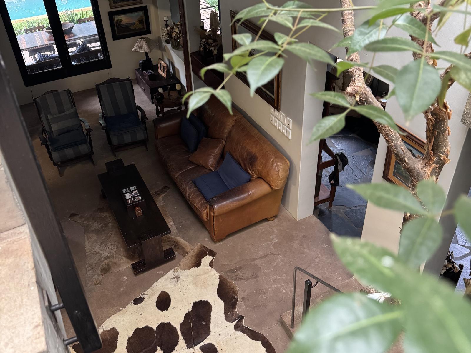 Please note that this is a family home. Nestled among the treetops, this unique family home is a 6-bedroom treehouse retreat blending luxury with nature. Upstairs, you'll find three bathrooms (one with a walk-in closet, bath, and shower, the others with en-suite showers), while downstairs includes a bathroom and an outdoor shower for a refreshing rinse under the open sky. One of the bedrooms is set slightly apart from the main house, offering privacy, its own fridge, and an en-suite shower. A self-contained flat with a shower-only ensuite adds extra flexibility for guests. The two lounges cater to every mood - upstairs offers Netflix and DStv for entertainment, while the ground floor lounge provides DStv access for a more relaxed viewing experience. The fully equipped kitchen is ideal for home-cooked meals, and multiple workspaces, a study/reading nook, and a peaceful library make this a dream for both leisure and productivity. A stoep invites relaxed mornings or evening chats, while two braai spots - one conveniently placed next to the sparkling outdoor pool—encourage outdoor living at its finest. Whether you're escaping for a quiet retreat or entertaining a group, this treehouse balances comfort, space, and serenity.