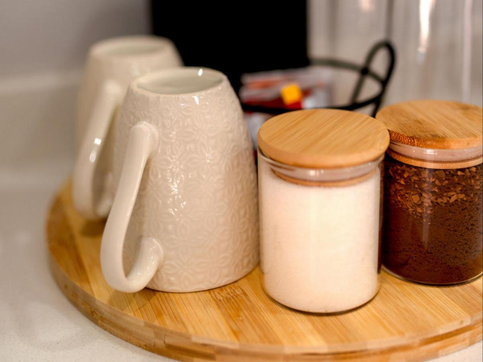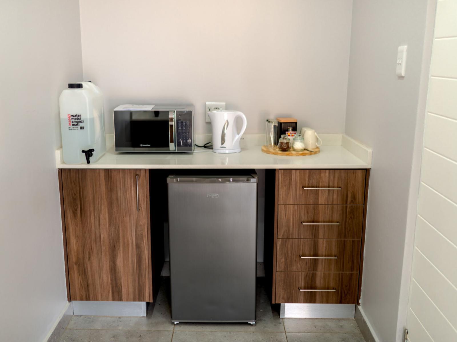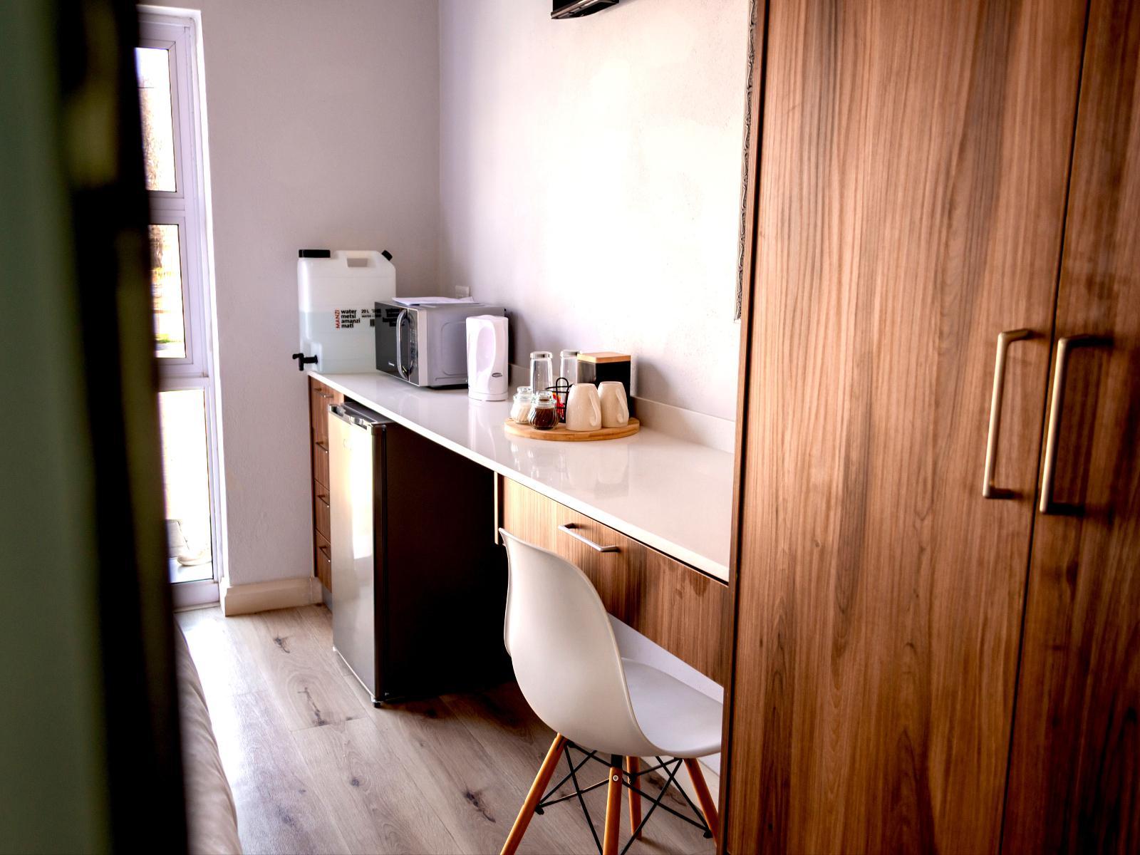 This suite is furnished with a king-size bed and an en-suite bathroom with a shower. This unit contains tea- and coffee-making facilities, free Wi-Fi, air-conditioning, a bar fridge, a microwave, and other luxuries for convenience.