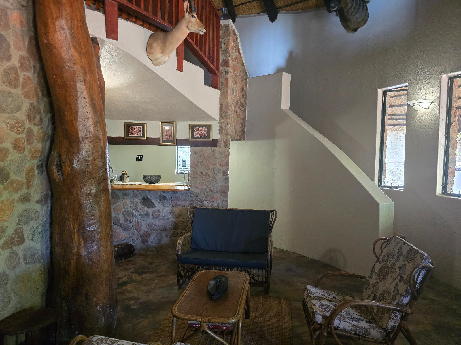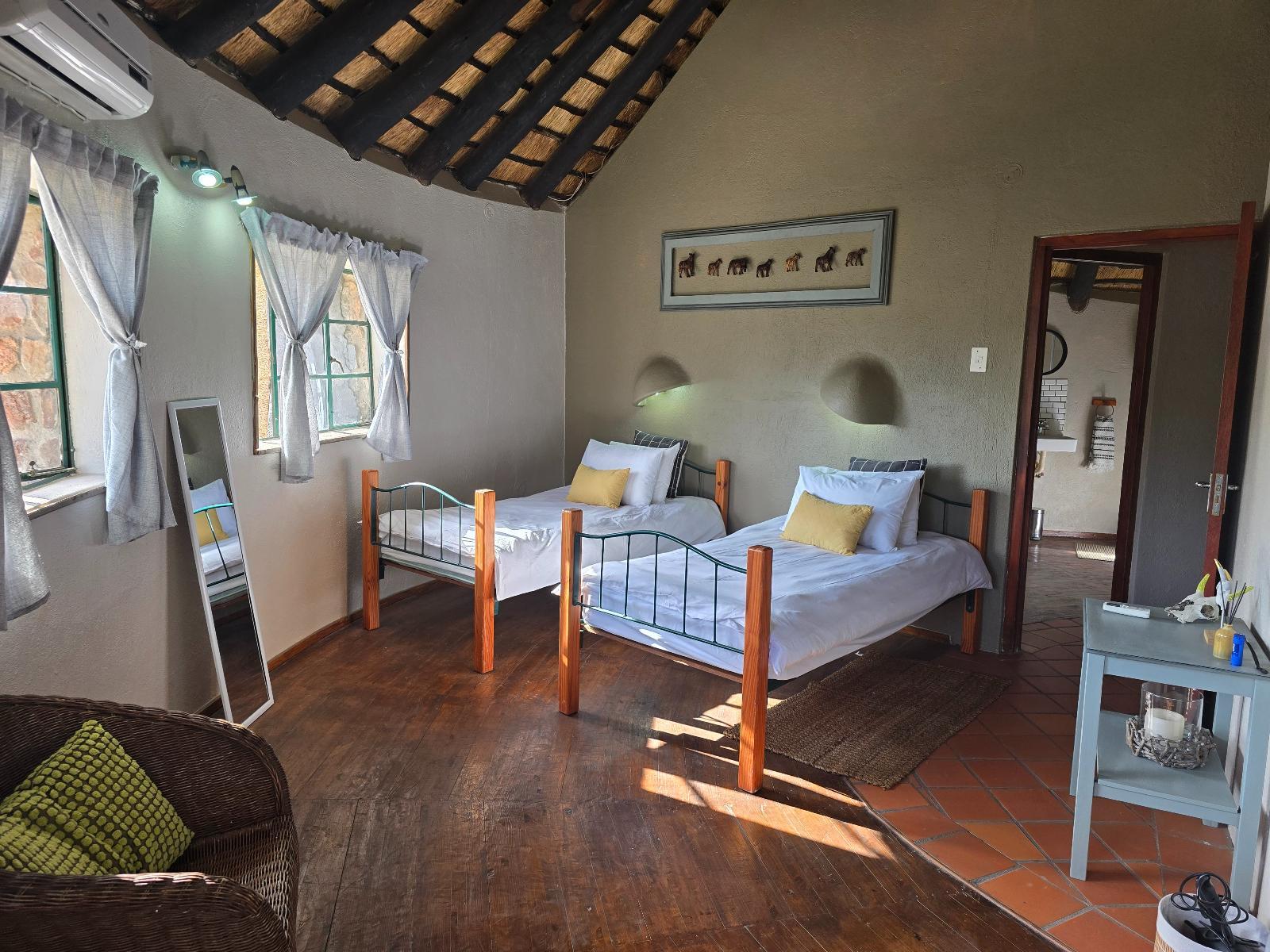 Escape to the tranquil retreat of Tintshaba, where a secluded atmosphere provides the ideal backdrop for reconnecting with family and friends. Spend your days lounging by the inviting swimming pool, and your evenings sharing stories around the boma and rustic bar. Our accommodation is offered in The Rondavel and The Stables. Both our accommodations offer two bedrooms. The Rondavel offers two cosy bedrooms: one with a comfortable queen bed and the other with two single beds. At The Stables, you'll find another two bedrooms, featuring a queen bed in one and two three-quarter beds in the other and a sofa bed in the living area. All bathrooms are fully fitted with a shower, toilet, and wash basin for your convenience. Enjoy the convenience of a fully equipped kitchen in both units, complete with a stove, microwave, fridge, and coffee and tea-making facilities. Each also features a comfortable sitting area and a patio with an outdoor dining space. Stay connected with Wi-Fi available in both units. You're also welcome to cool off in the shared swimming pool.