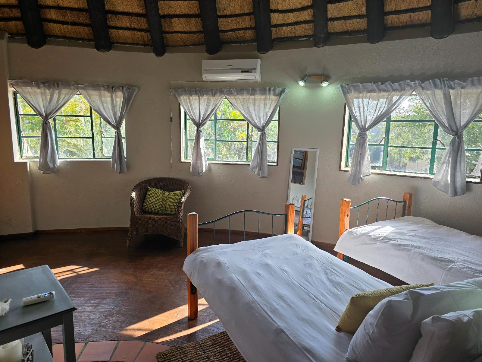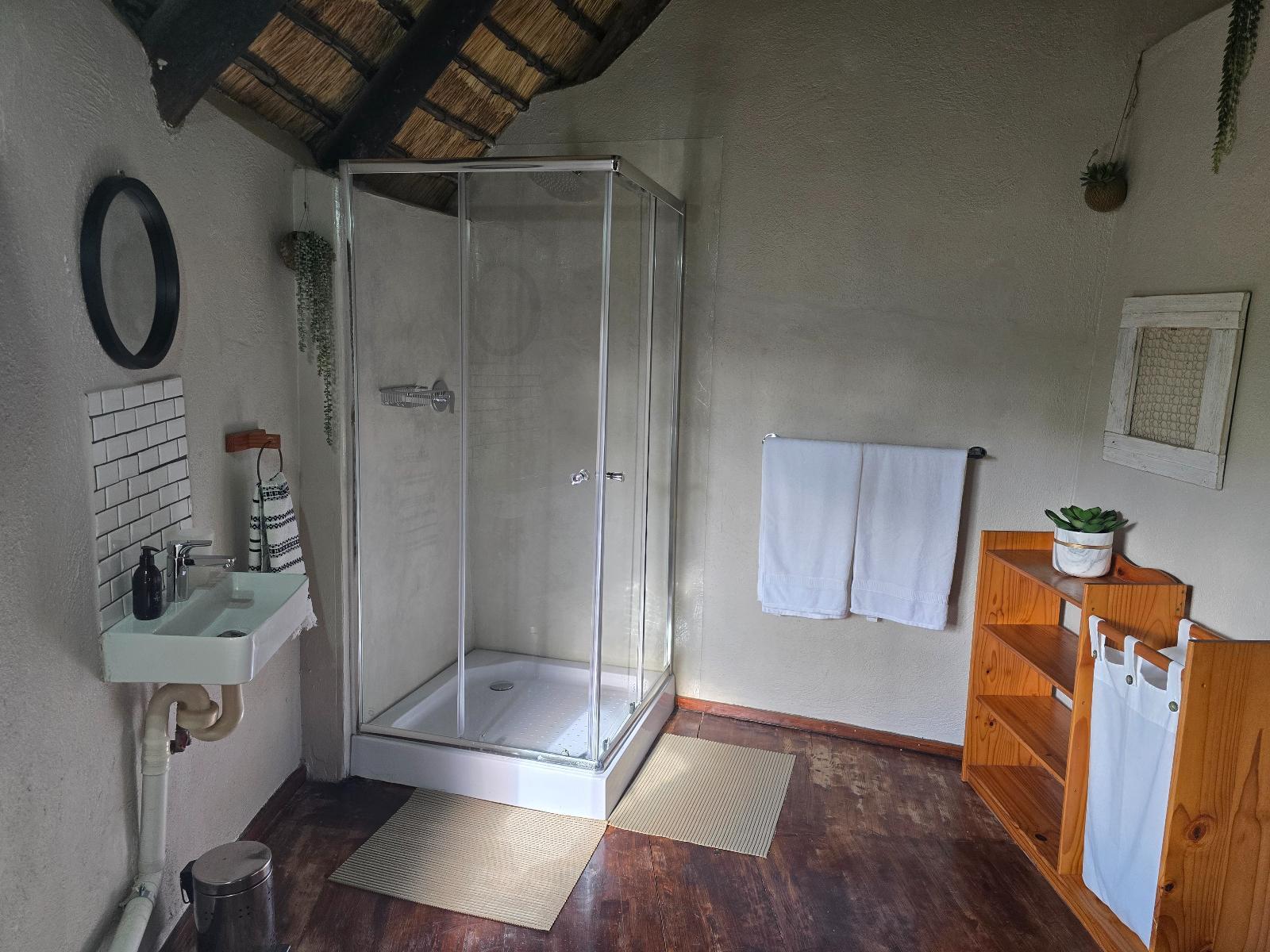This two-bedroom rondavel is perfect for up to four guests. It features a queen bed in one room and two single beds in the other. The bathroom consists of a shower, toilet and wash basin.A full, self-catering kitchen with a dining area is also included.
