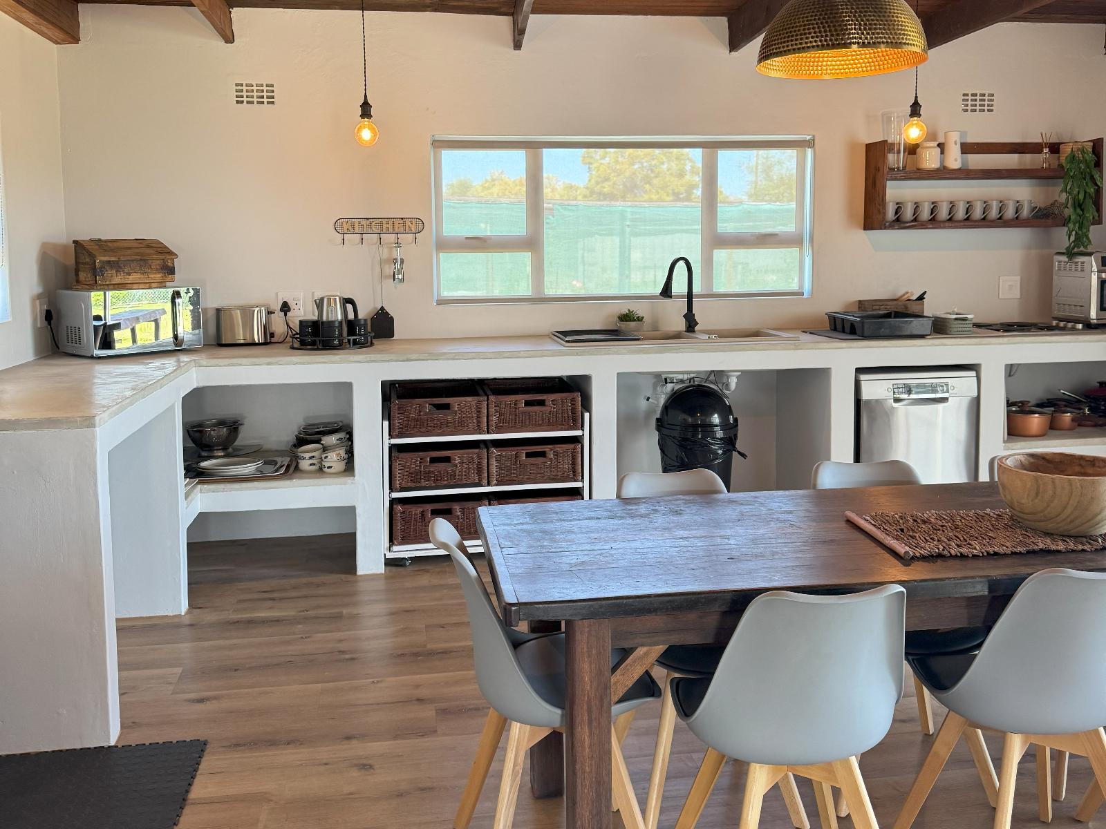 Situated in the Jacobuskraal Nature Reserve, Tula Guest Farm offers guests comfortably furnished self-catering accommodation in a tranquil setting, just 6 km from the small coast town, Yzerfontein. Guests can book the spacious 18-sleeper Main House or the 9-sleeper Cottage, each with lovely views of the surroundings. The Main House offers 2 rooms furnished with a queen-size and a single bed, 3 rooms with double beds, and an attic room that is furnished with a queen-size bed and 4 single beds. Each of the rooms has an en-suite bathroom that is fitted with a shower only or a bath and a shower. The large kitchen is fully equipped with a stove and oven, microwave, tea and coffee facilities, a 10-seater dining table and an indoor fireplace. Guests can relax in the lounge which offers comfortable seating, a cosy fireplace, and a TV and leads to a sun room, which offers comfortable seating and a second 10-seater dining table that opens to the patio. Outdoor braai facilities are also available. The cozy Cottage offers 3 guests bedrooms, each furnished with a comfortable queen-size and a single bed. The rooms share the use of 2 bathrooms, one fitted with a shower only, and the other with a bath and a shower. The kitchen is fully equipped for self-catering with a 4 plate hob and conventional oven, a microwave, dishwasher, a fridge and a dining table. Tula Guest Farm offers an inviting swimming pool, ample parking and lovely views of the farm.