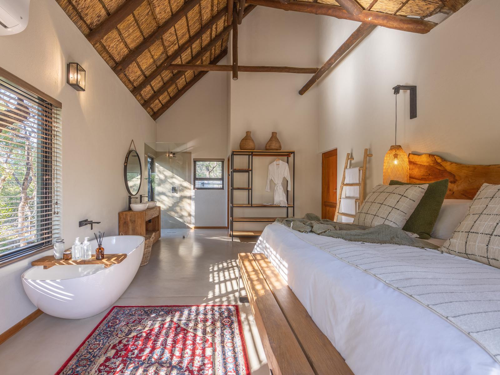 Ukanyi Luxury Villa is a beautiful villa situated in the Moditlo Private Game Reserve, Hoedspruit offering full board accommodation and 2 game drives per day. Overlooking an inviting heated private swimming pool and surroundings. Air-conditioned for comfort, the rooms are furnished with king-size beds and en-suite bathrooms fitted with freestanding baths and walk-in showers, opening onto patios with outdoor seating and enjoying the views. The living area features a fully equipped kitchen with a dishwasher, a 6-seater dining table and a lounge area with comfortable seating and a TV and free Wi-Fi is available. The living area opens to a covered patio with outdoor seating and a wooden deck with sun loungers. A walkway leads guests to a boma under the trees for an evening under the stars. A variety of wellness packages are available for guests to get rejuvenated in-house.